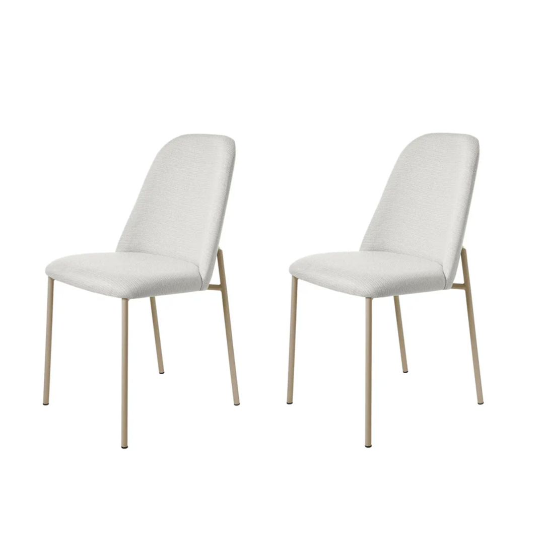 Conjunto de 2 Cadeiras de Aço Estofada Lucille - Champanhe c/ Linho Mescla Cru