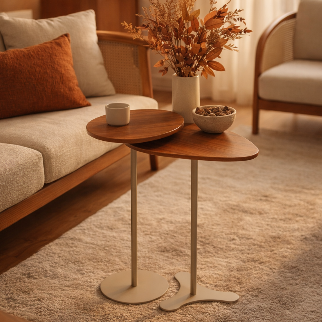 Versátil e fácil de integrar a salas, quartos e home offices, o conjunto de mesas laterais orgânicas Botanic oferece apoio prático para otimizar espaços menores.