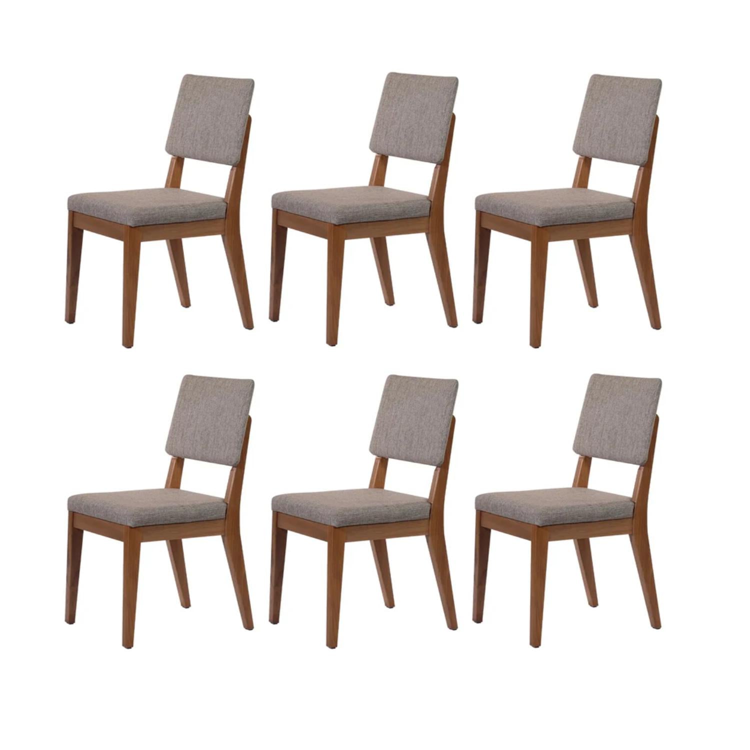 Conjunto de 6 Cadeiras de Madeira Maciça Estofada Ella - Natural c/ Linho Mescla Cinza