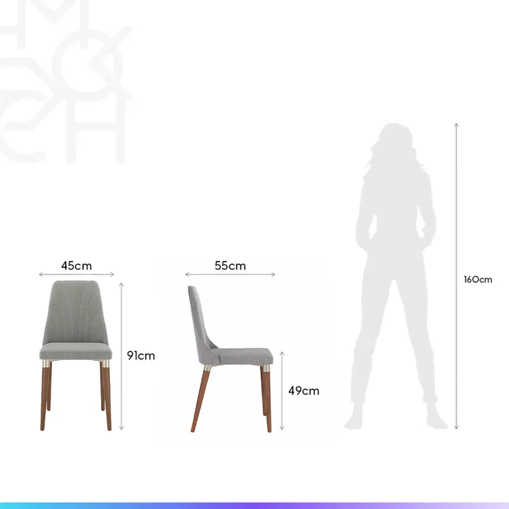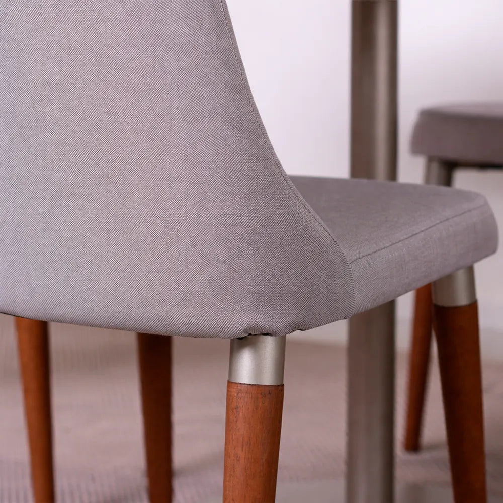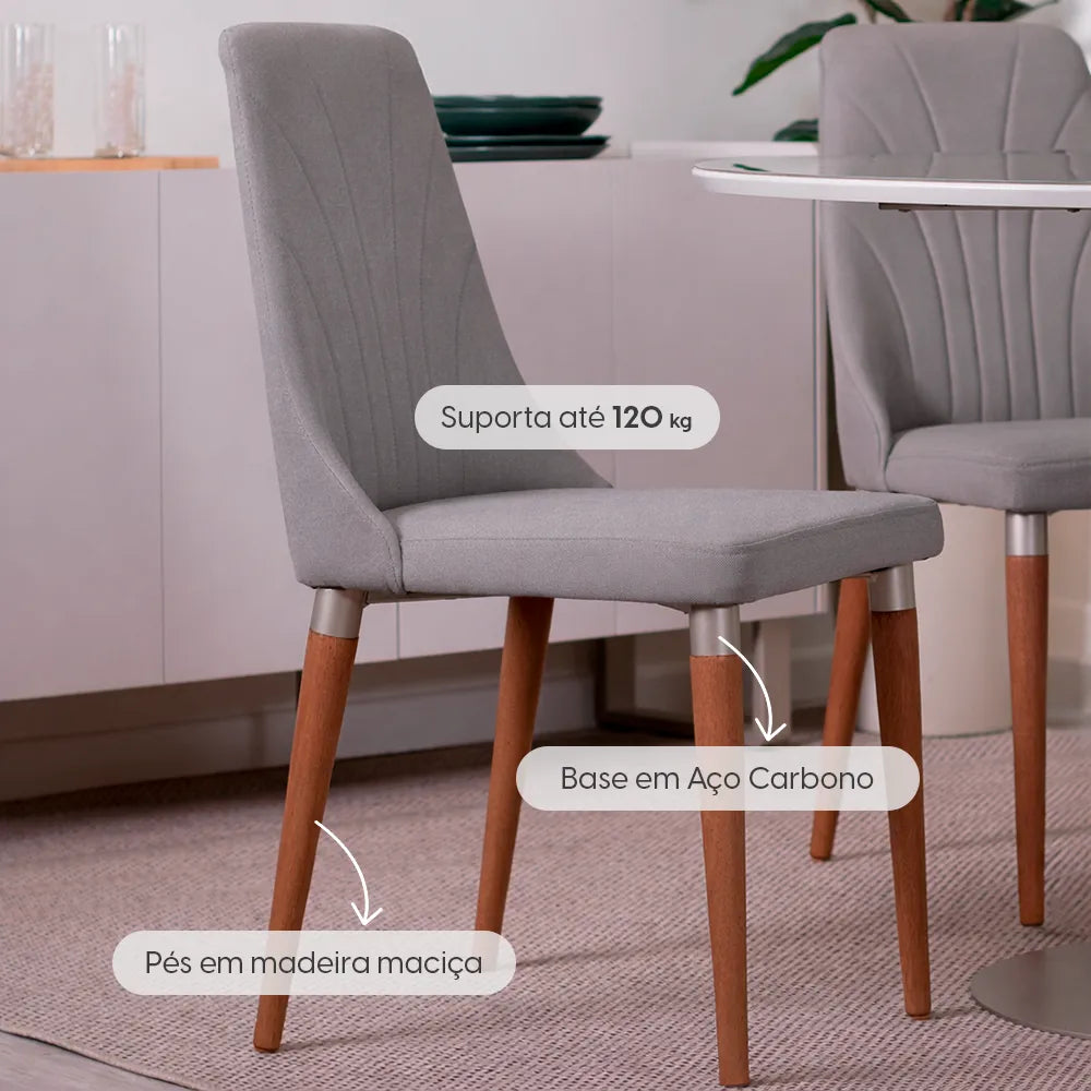 Conjunto de 8 Cadeiras de Madeira Maciça Estofada Lara - Natural c/ Linho Cinza - Champanhe