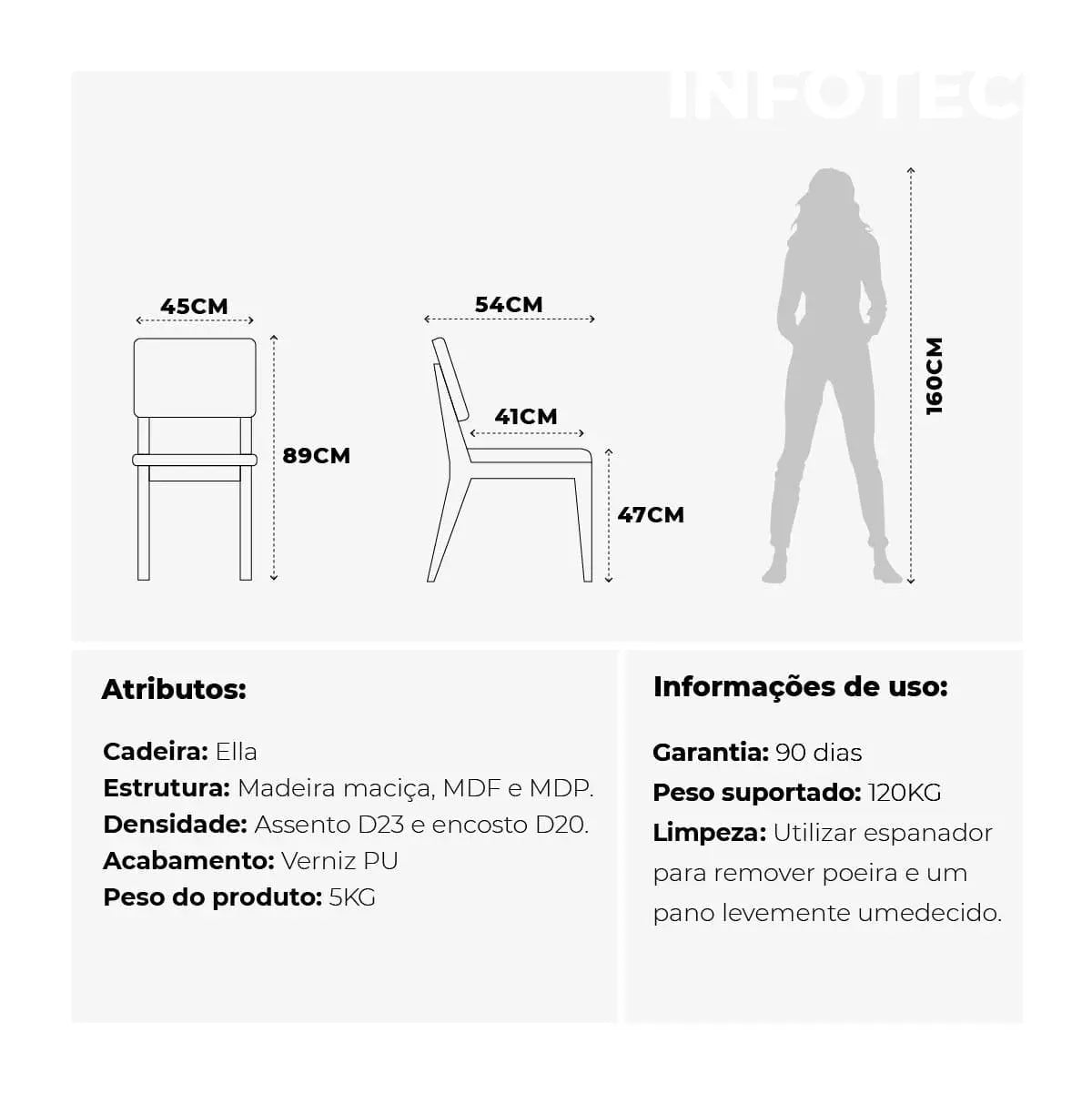 Transforme seus momentos à mesa em experiências excepcionais com esse conjunto de jantar compacto. A mesa retangular Avena, com capacidade para 4 pessoas, une design contemporâneo e durabilidade. Sua base central cruzada, a tornam perfeita para otimizar espaços residenciais, permitindo o encaixe das cadeiras entre seus pés, além de oferecer estabilidade e personalidade ao ambiente. Desenvolvida em MDF de alta qualidade e tampo usinado refinado, a mesa é a combinação perfeita de elegância e funcionalidade. Complementando a composição, as cadeiras de jantar estofadas Ella proporcionam conforto e estilo incomparáveis. Seu design único, que combina a beleza da madeira maciça com estofamento requintado, renova o ambiente. Versáteis para diversos cenários, as cadeiras são ideais para residências, restaurantes e espaços comerciais, destacando-se pelo encosto discreto e curvatura anatômica.