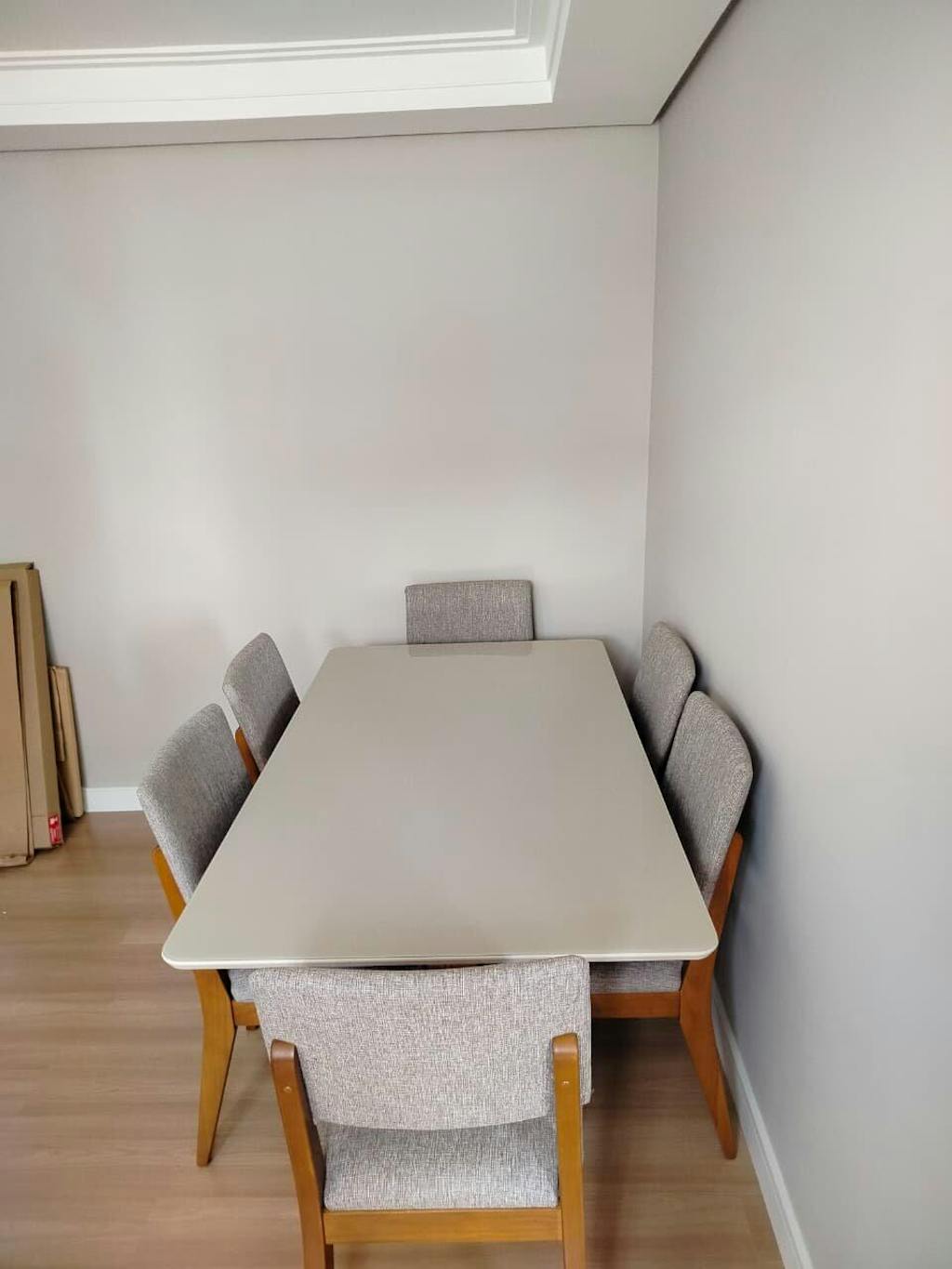 Conjunto de Jantar Mesa com Vidro Avena 6 Cadeiras New Drop - Canella c/ Cinza