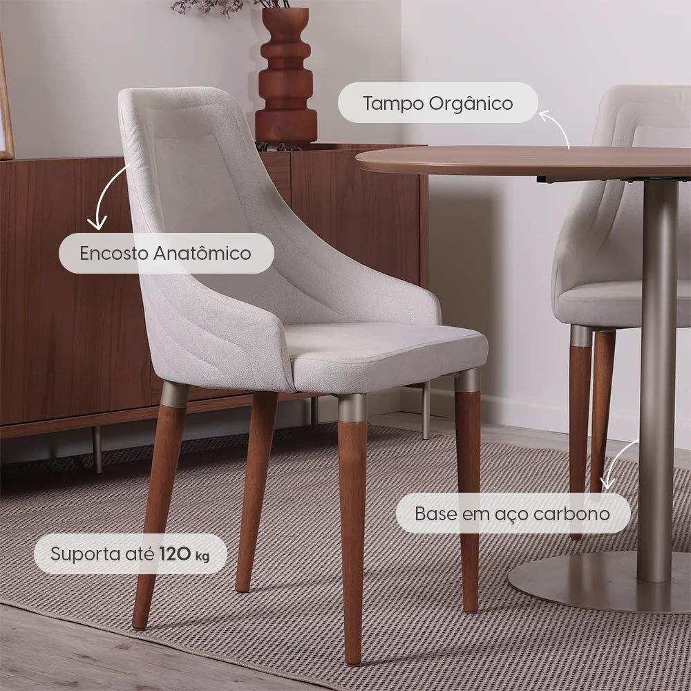 Conjunto de Jantar Mesa Orgânica Kalyx 4 Cadeiras Evelyn - Champanhe c/ Canella - Off White