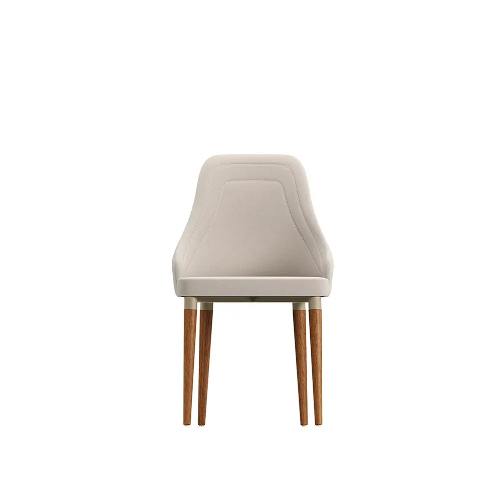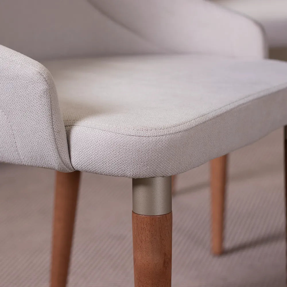 Cadeira de Madeira Maciça Estofada Evelyn - Natural c/ Linho Off White - Champanhe