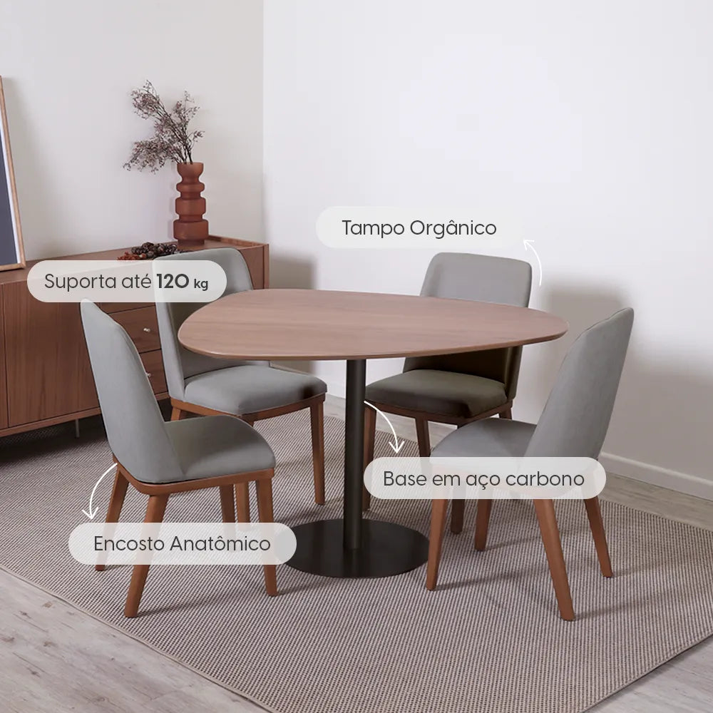 Mesa orgânica e cadeiras confortáveis no dia a dia.
