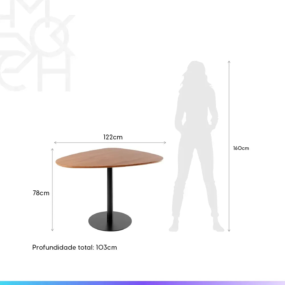 Mesa de Jantar Orgânica para 4 Lugares Kalyx 122 cm - Preto c/ Canella.