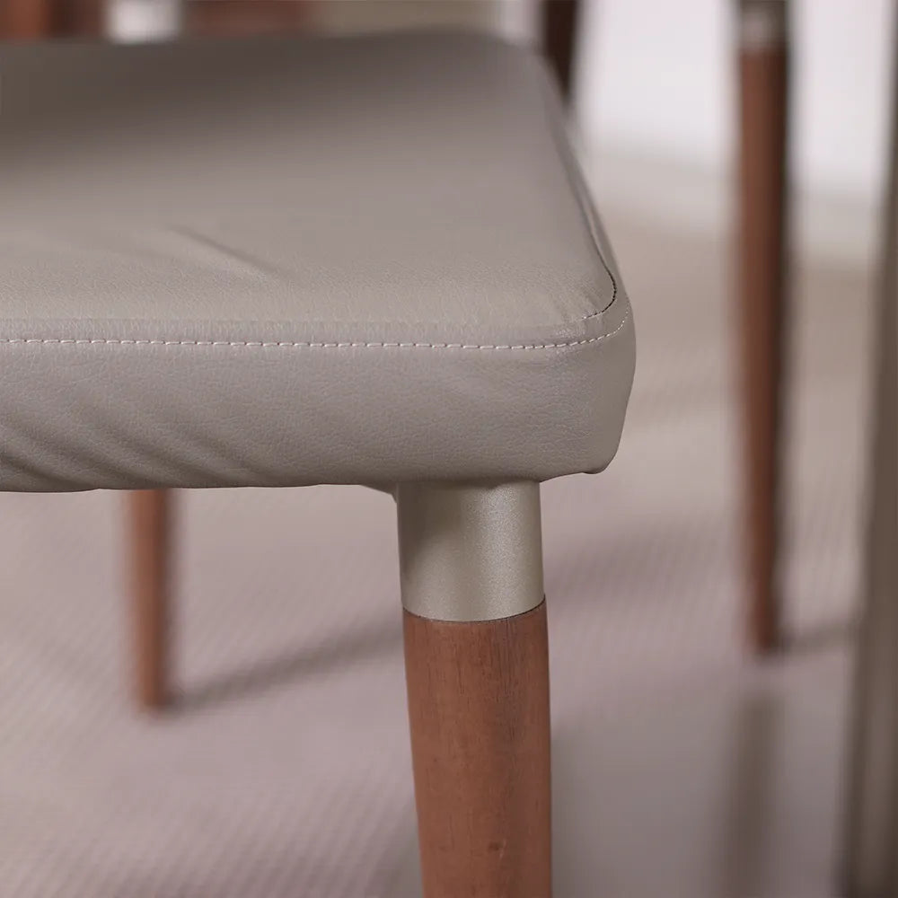 Cadeira de Madeira Maciça Estofada Lara - Natural c/ PU Fendi - Champanhe