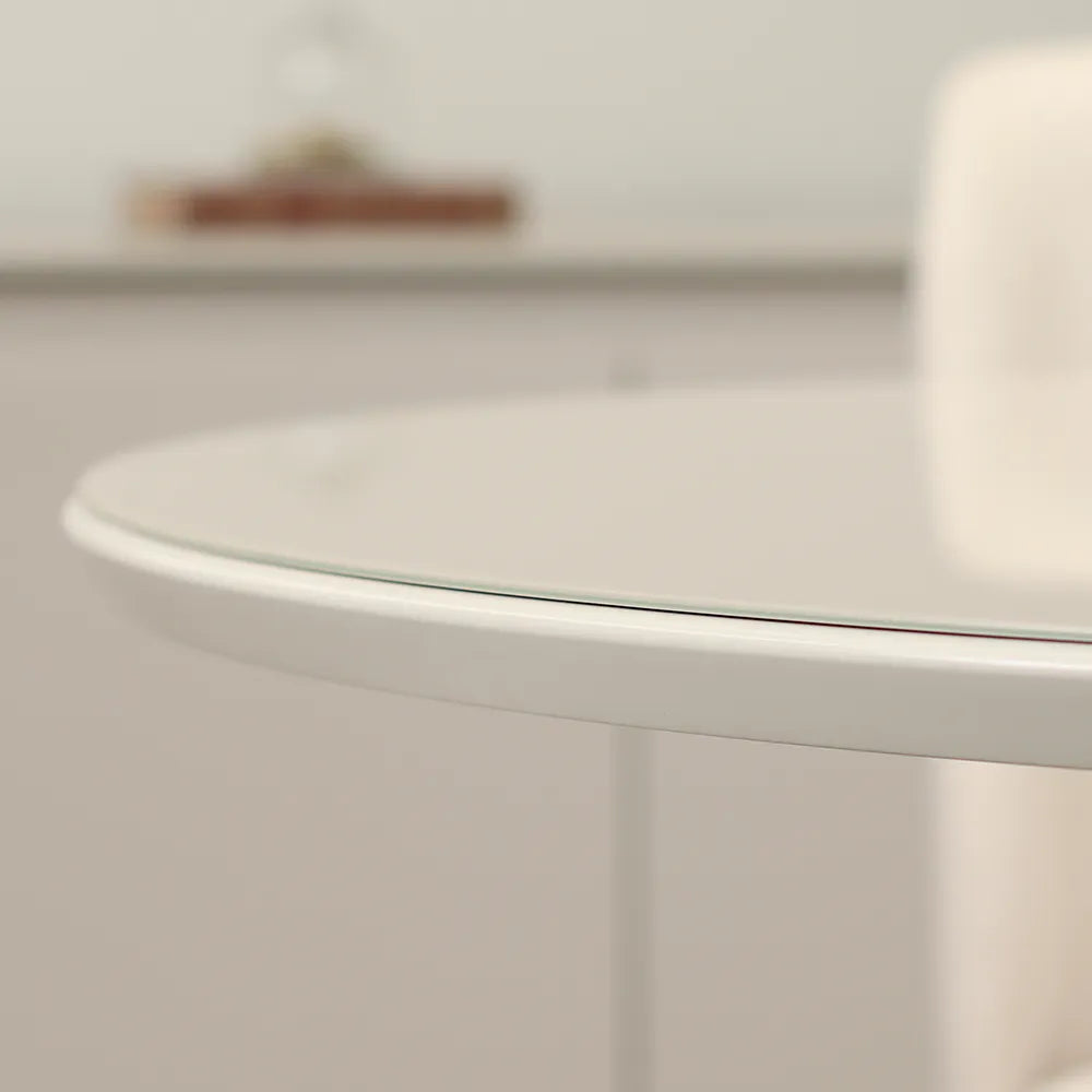 Mesa de Jantar Redonda c/ Vidro para 6 Lugares Kalina 135 cm - Off White Fosco c/ Canella