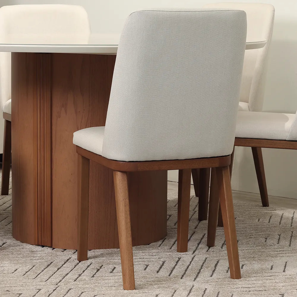 Cadeira de Madeira Maciça Estofada Kalina - Natural c/ Linho Off White.