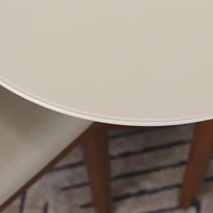 Mesa de Jantar Redonda c/ Vidro para 6 Lugares Kalina 135 cm - Off White Fosco c/ Canella