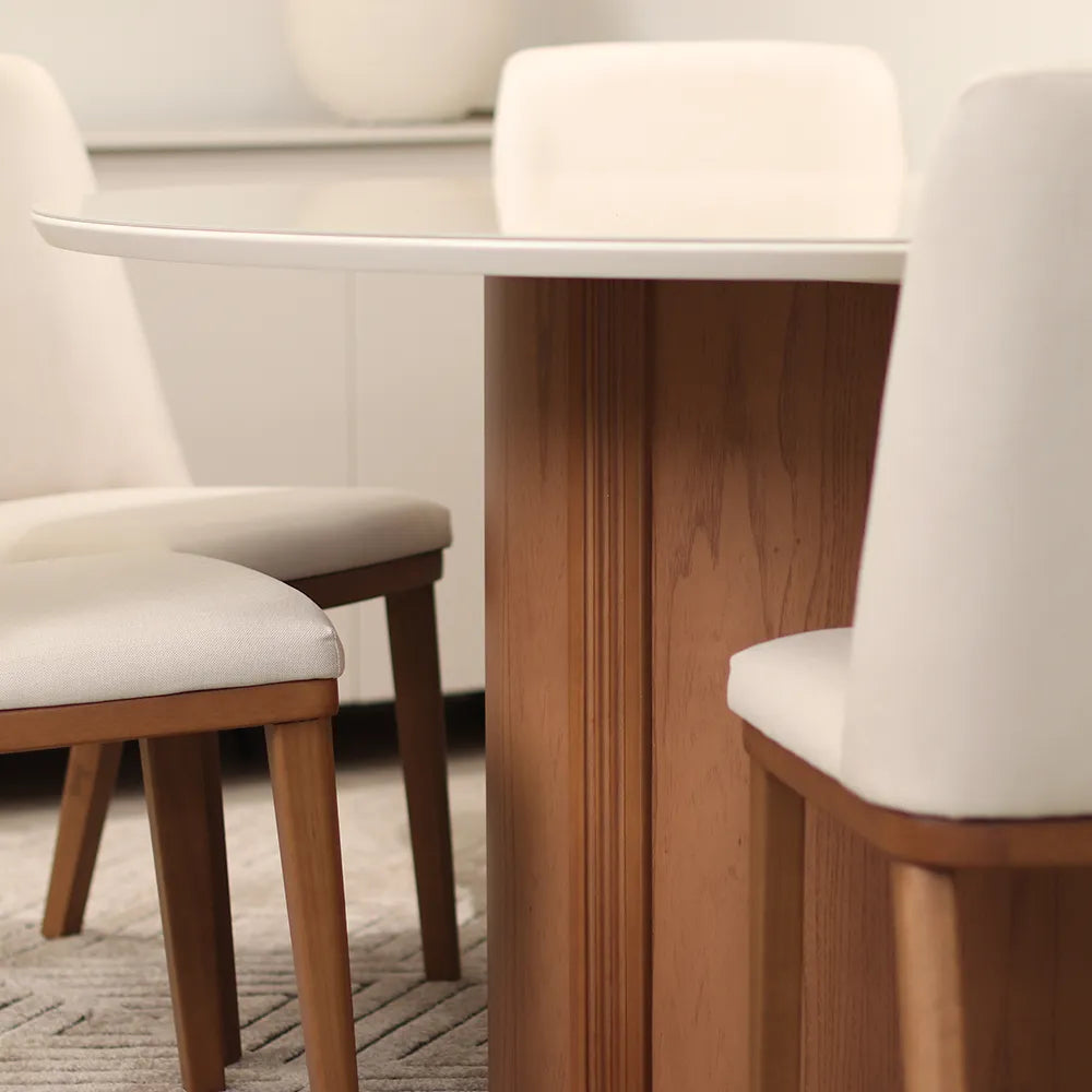 Receba seus convidados ou aproveite as refeições diárias com muito mais conforto e praticidade! O conjunto de jantar Kalina une design funcional e detalhes pensados para o dia a dia. A mesa redonda, para até seis lugares, tem tampo com bordas arredondadas e vidro aplicado, garantindo um visual leve e moderno. Sua base central, com acabamento impecável e detalhe ripado em madeira maciça, é estável e se adapta bem a diferentes espaços, como cozinhas e salas de jantar. As cadeiras acompanham o mesmo conceito, com assentos estofados e encostos anatômicos que proporcionam conforto prolongado. Com pés de madeira maciça e revestimento resistente, elas são a escolha ideal para deixar suas refeições mais aconchegantes. Seja para um café da manhã descontraído ou um jantar especial, o conjunto Kalina combina praticidade e estilo para tornar cada encontro ao redor da mesa ainda melhor!