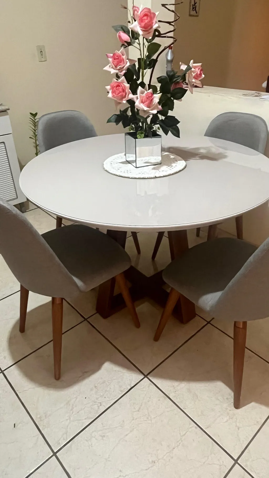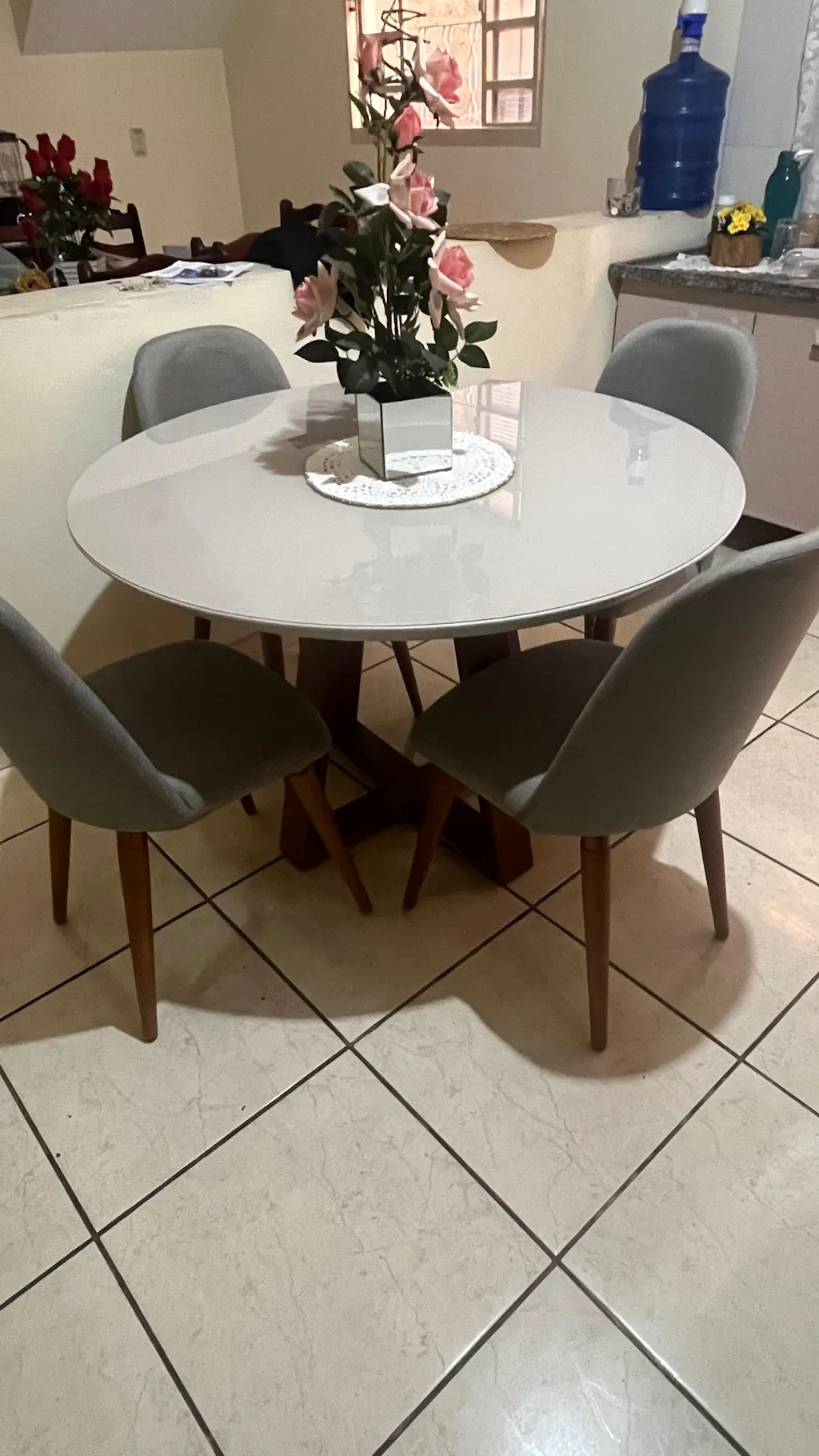Mesa e cadeiras simplesmente lindas. As cadeiras super confortáveis e lindas, chegou muito bem embalado,porém veio com um risco no vidro que é notável olhando bem de perto, mas mesmo assim amei a compra. Super recomendo.