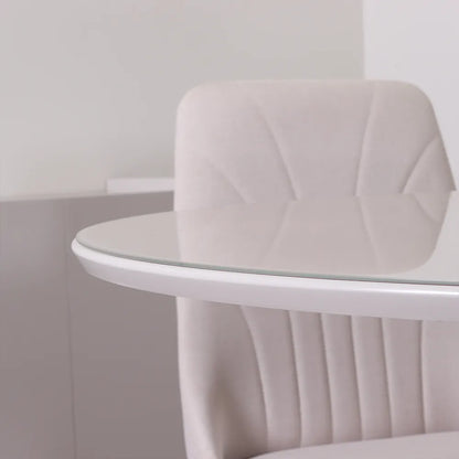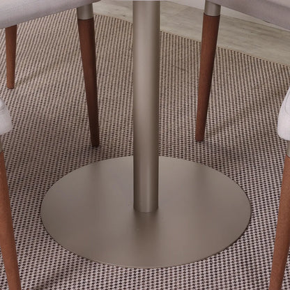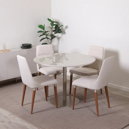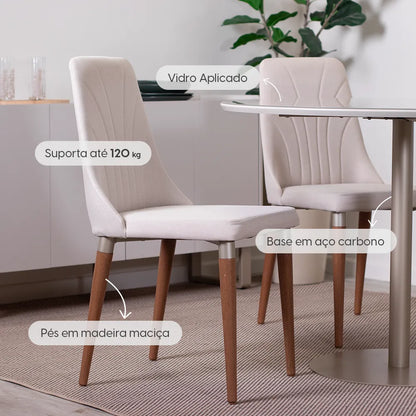 Conjunto de Jantar Mesa Redonda com Vidro Cloe 4 Cadeiras Lara - Champanhe c/ Off White