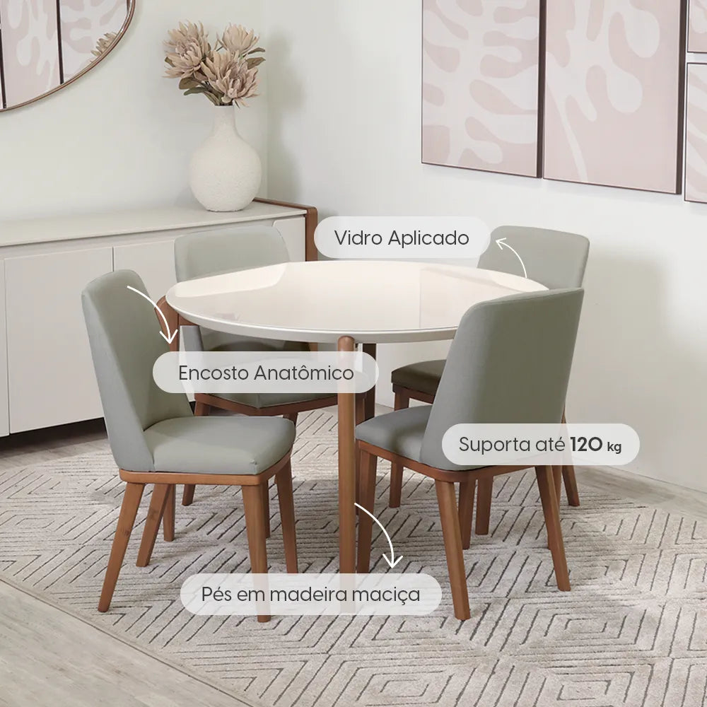 Pronta Entrega26% OFF12% OFF! Use o cupom: LIQUIDA12Conjunto de Jantar Mesa Redonda com Vidro Donatella 4 Cadeiras Kalina - Natural c/ Carbono