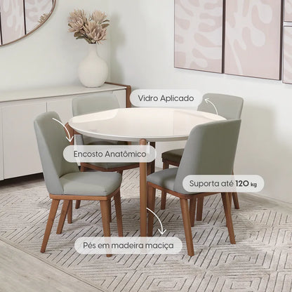 Conjunto de Jantar Mesa Redonda com Vidro Donatella 4 Cadeiras Kalina - Natural c/ Carbono