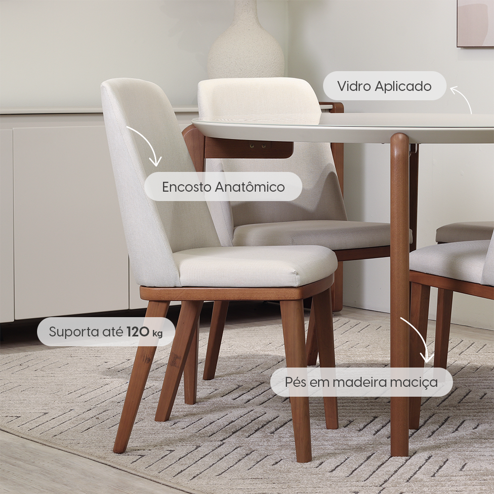 Pronta Entrega26% OFF12% OFF! Use o cupom: LIQUIDA12Conjunto de Jantar Mesa Redonda com Vidro Donatella 4 Cadeiras Kalina - Natural c/ Off White