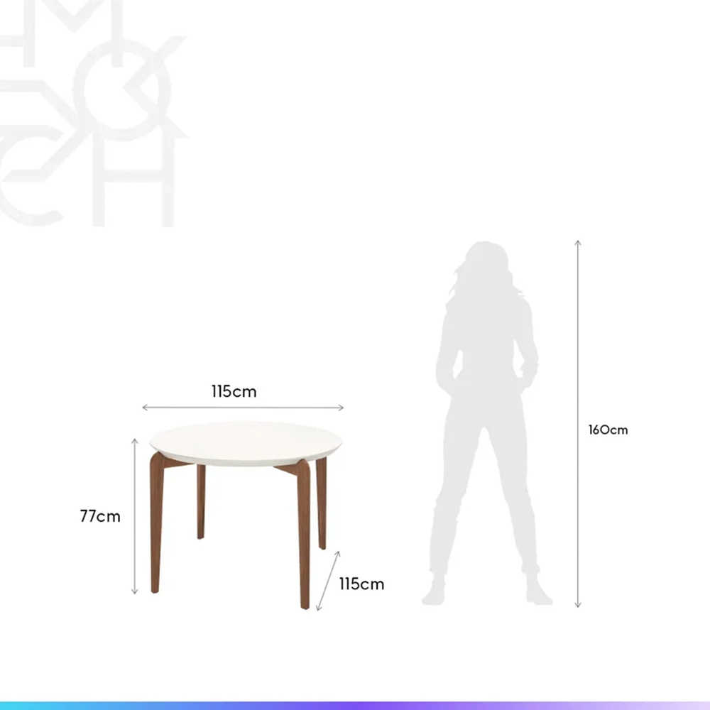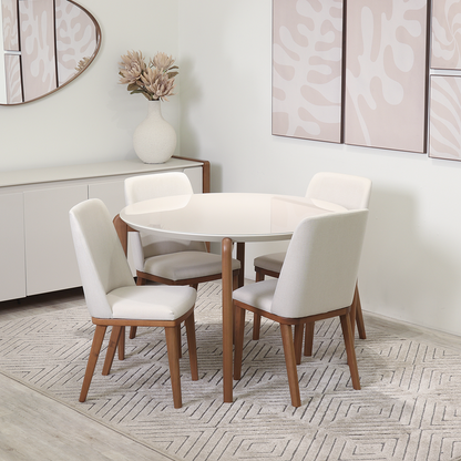 Conjunto de Jantar Mesa Redonda com Vidro Donatella 4 Cadeiras Kalina - Natural c/ Off White