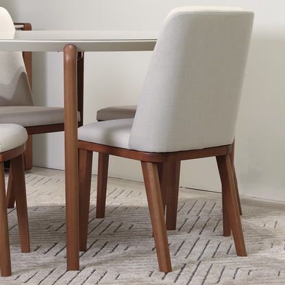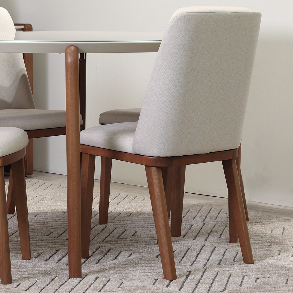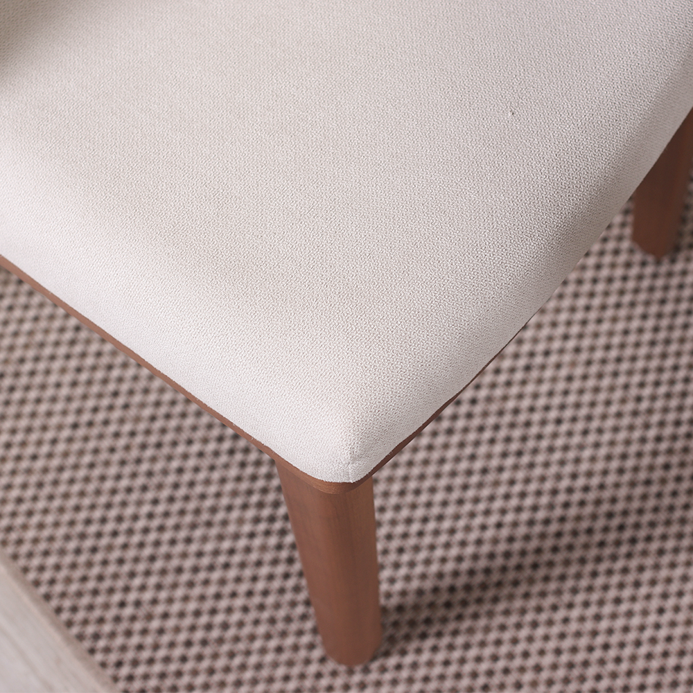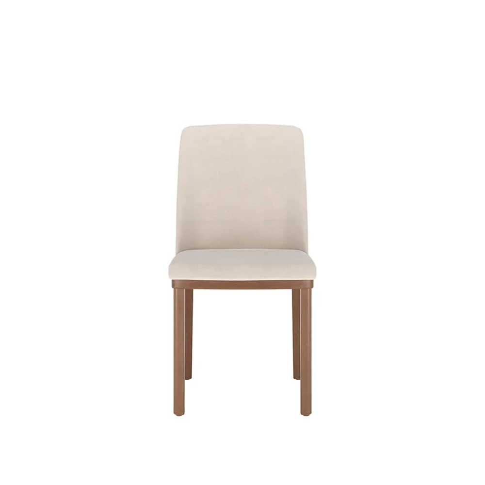 Cadeira de Madeira Maciça Estofada Kalina - Natural c/ Linho Off White.