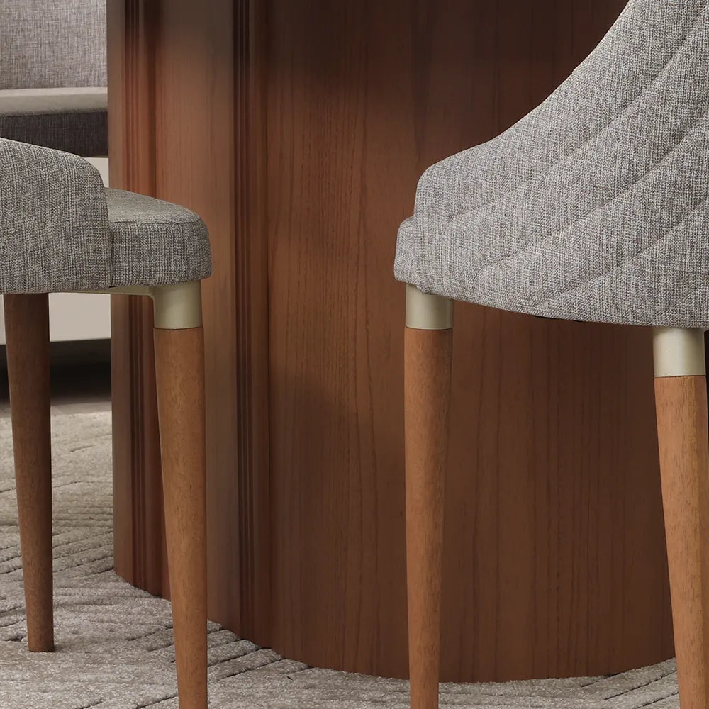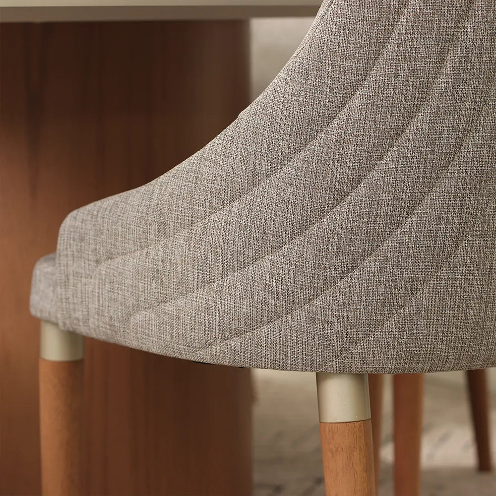 Cadeira de Madeira Maciça Estofada Evelyn - Natural c/ Linho Mescla Cinza - Champanhe