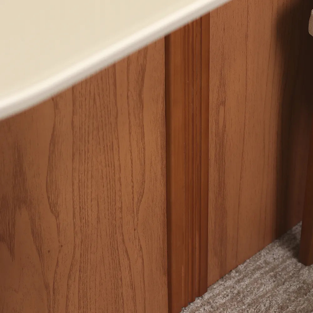 Ripado sutil na base em madeira maciça com acabamento em pintura UV.