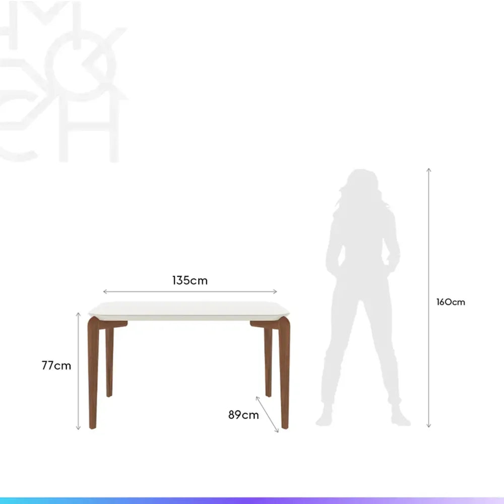 Mesa de Jantar Retangular c/ Vidro para 4 Lugares Donatella 135 cm - Off White Fosco c/ Natural