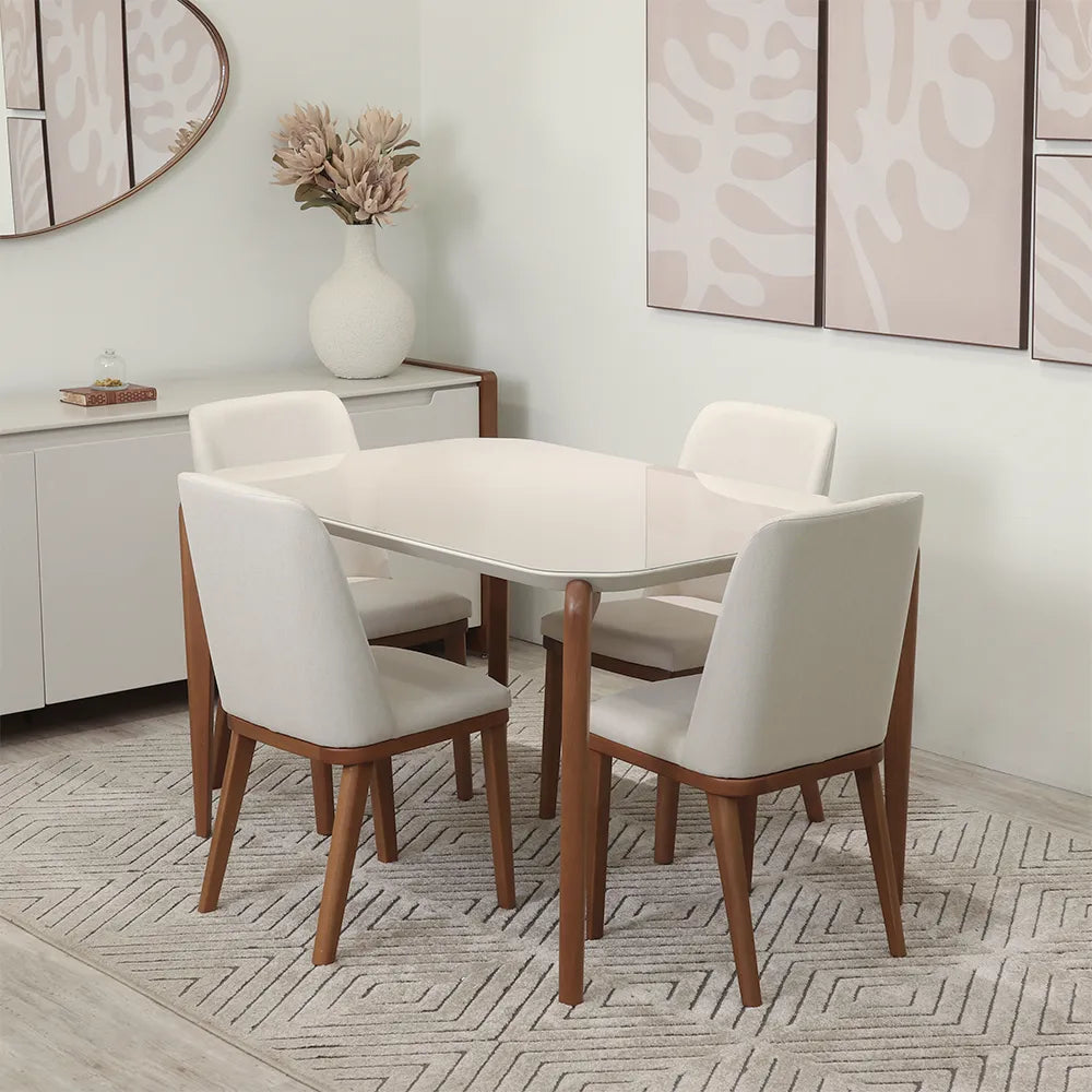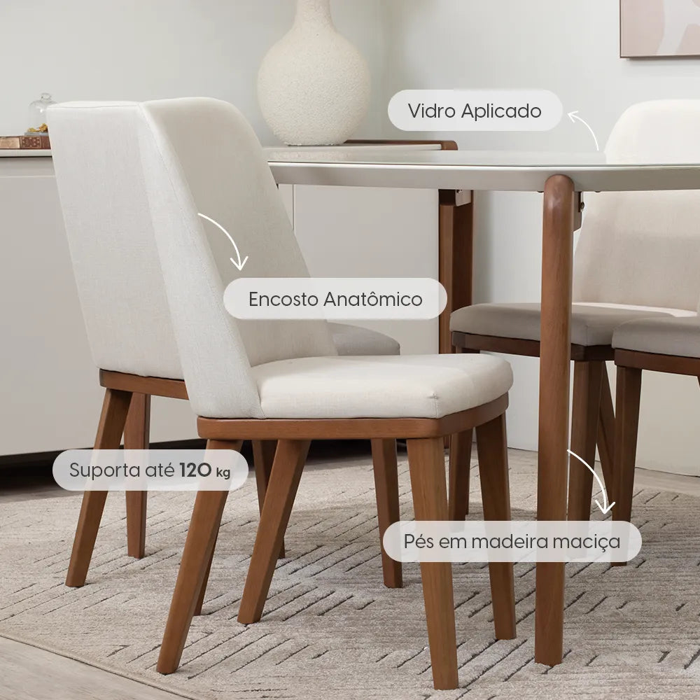 Conjunto de Jantar Mesa Retangular com Vidro Donatella 4 Cadeiras Kalina - Natural c/ Off White