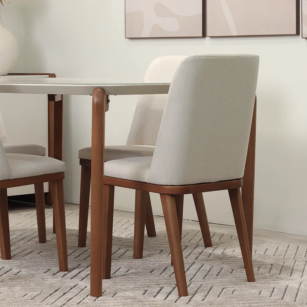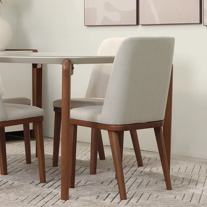 Cadeira de Madeira Maciça Estofada Kalina - Natural c/ Linho Off White.