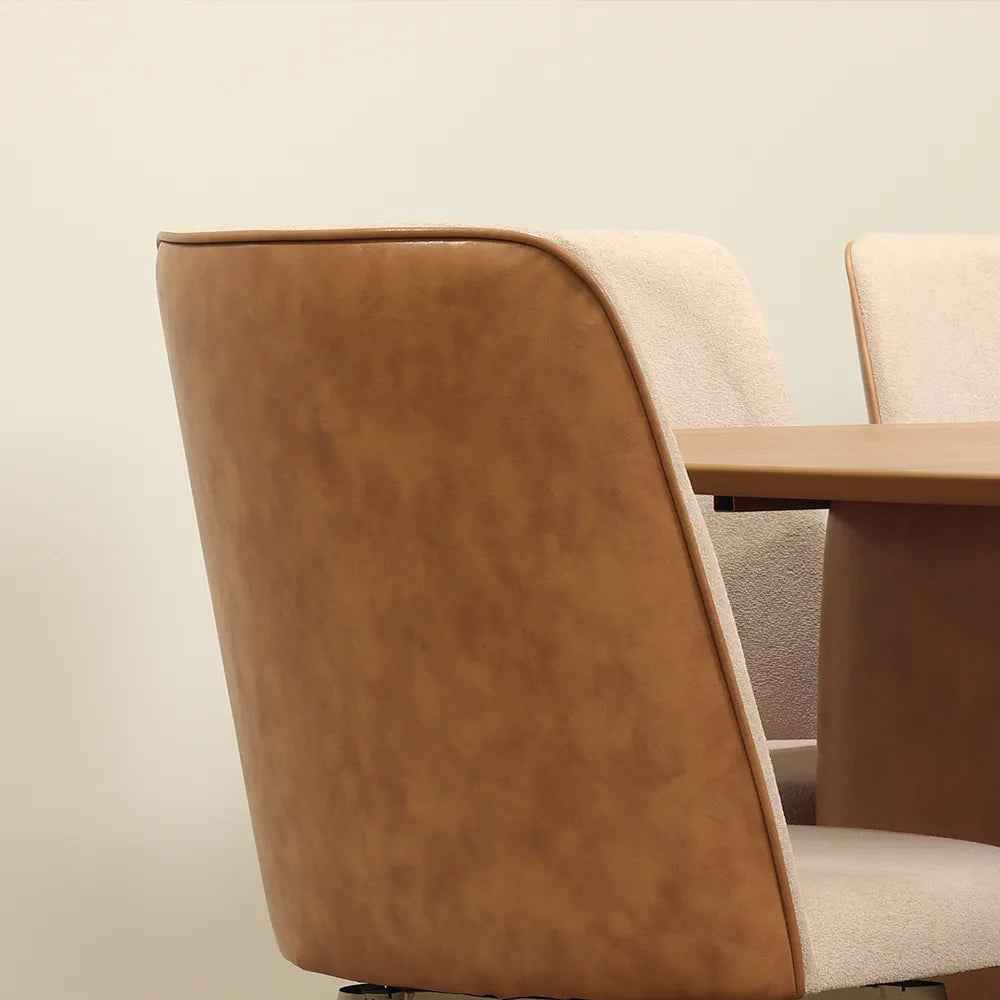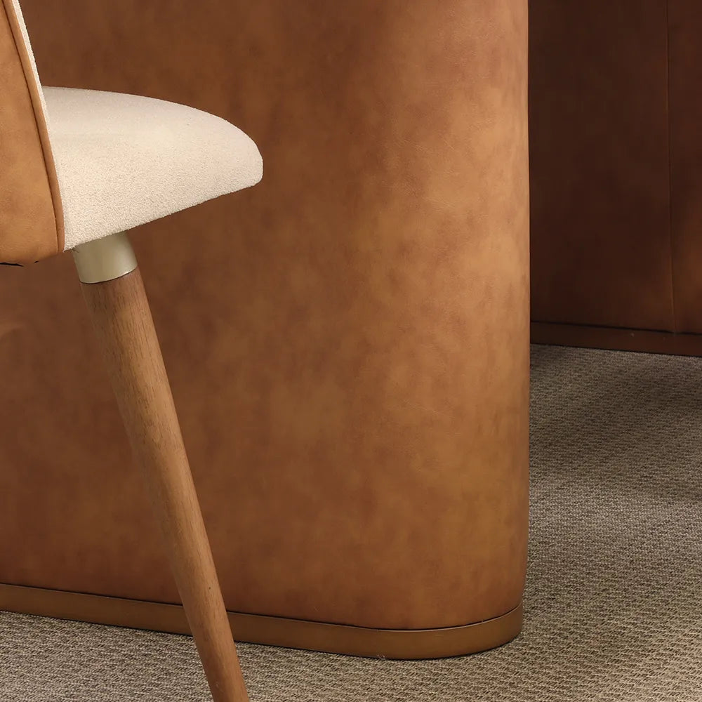 Cadeira de Madeira Maciça Estofada Dakota - Natural c/ Bouclé Fendi e PU Caramelo - Champanhe
