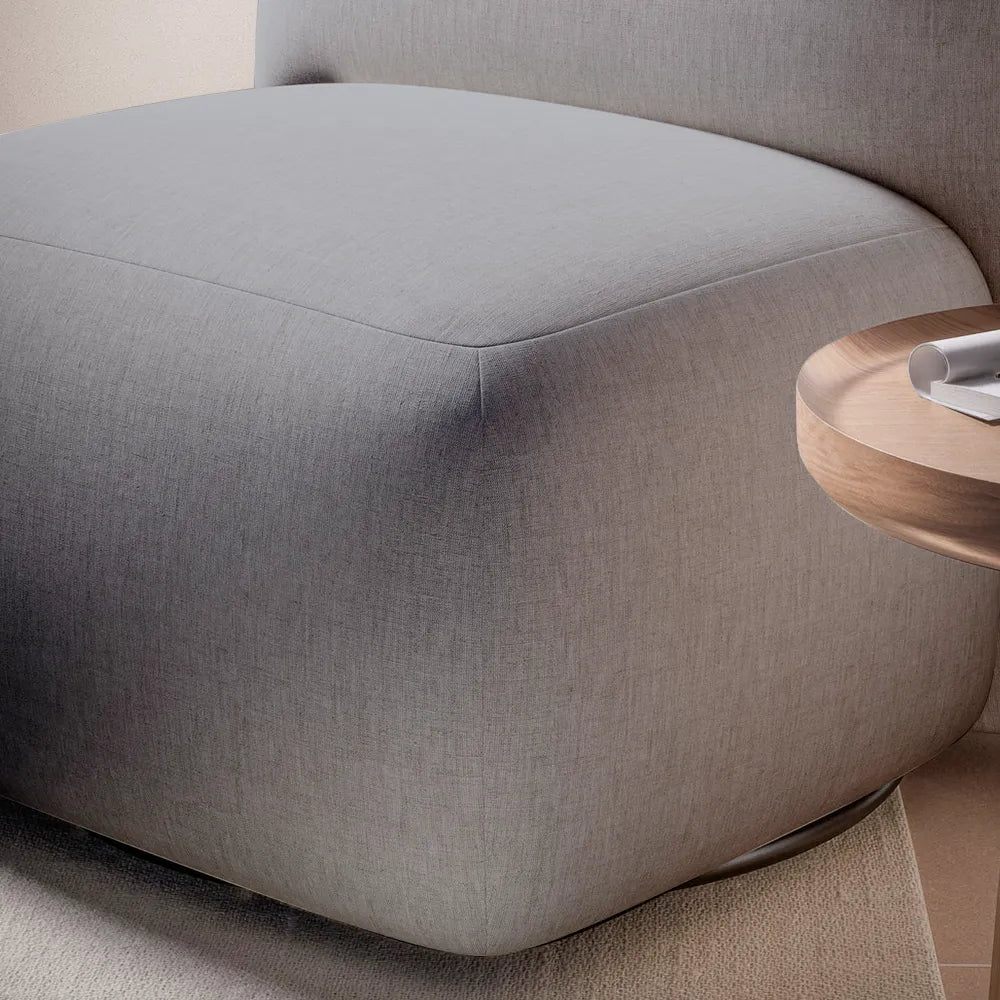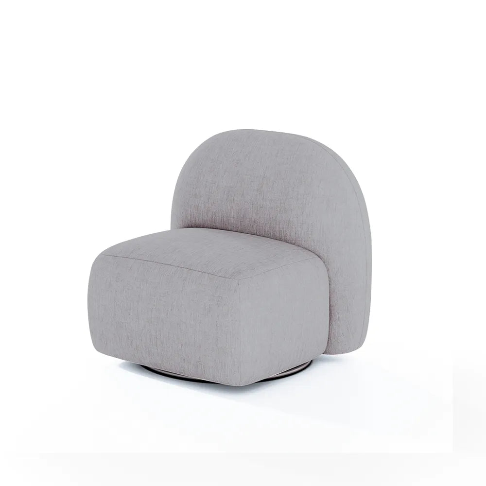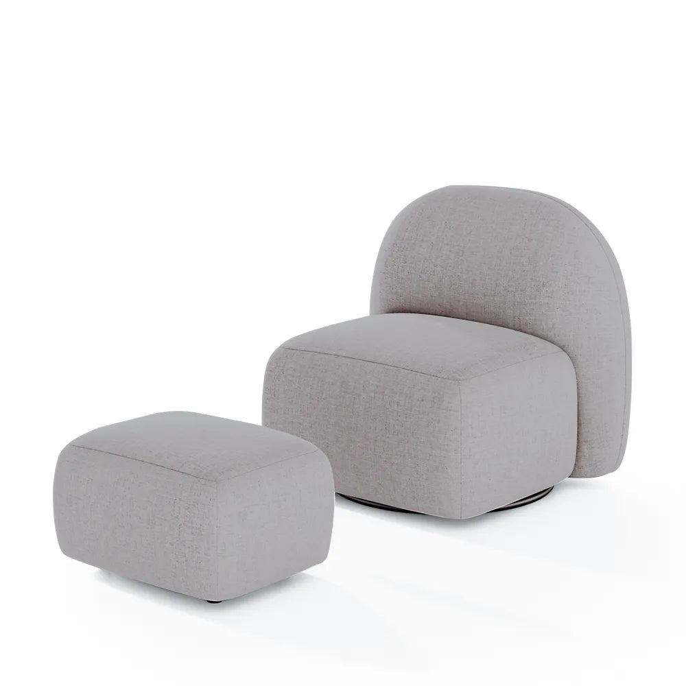 Conjunto Poltrona Giratória e Puff Estofados Aurora - Linho Texturizado Cinza