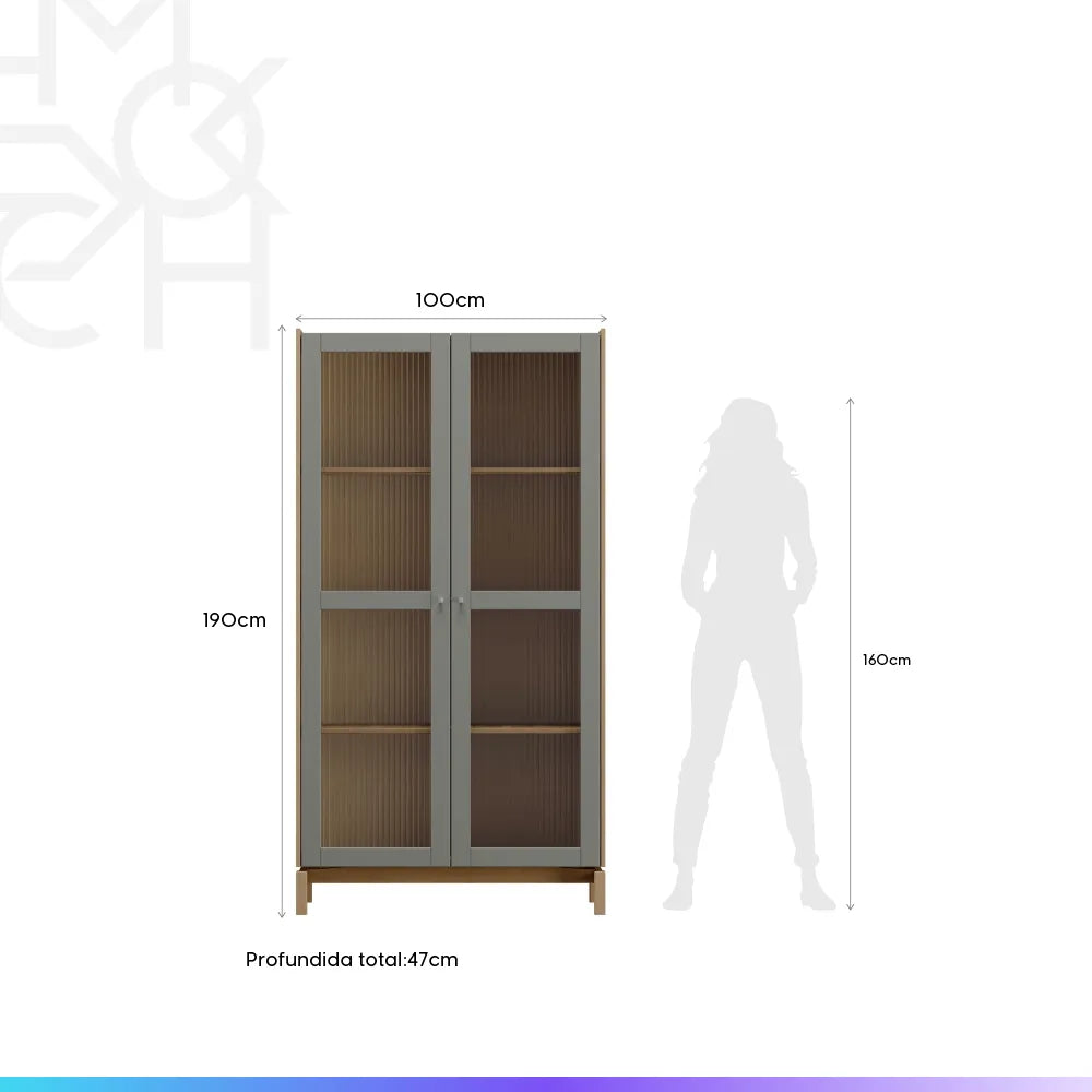 Cristaleira Madeira Maciça 2 Portas com Vidro Canelado Amsterdã 100 cm - Natural c/ Verde