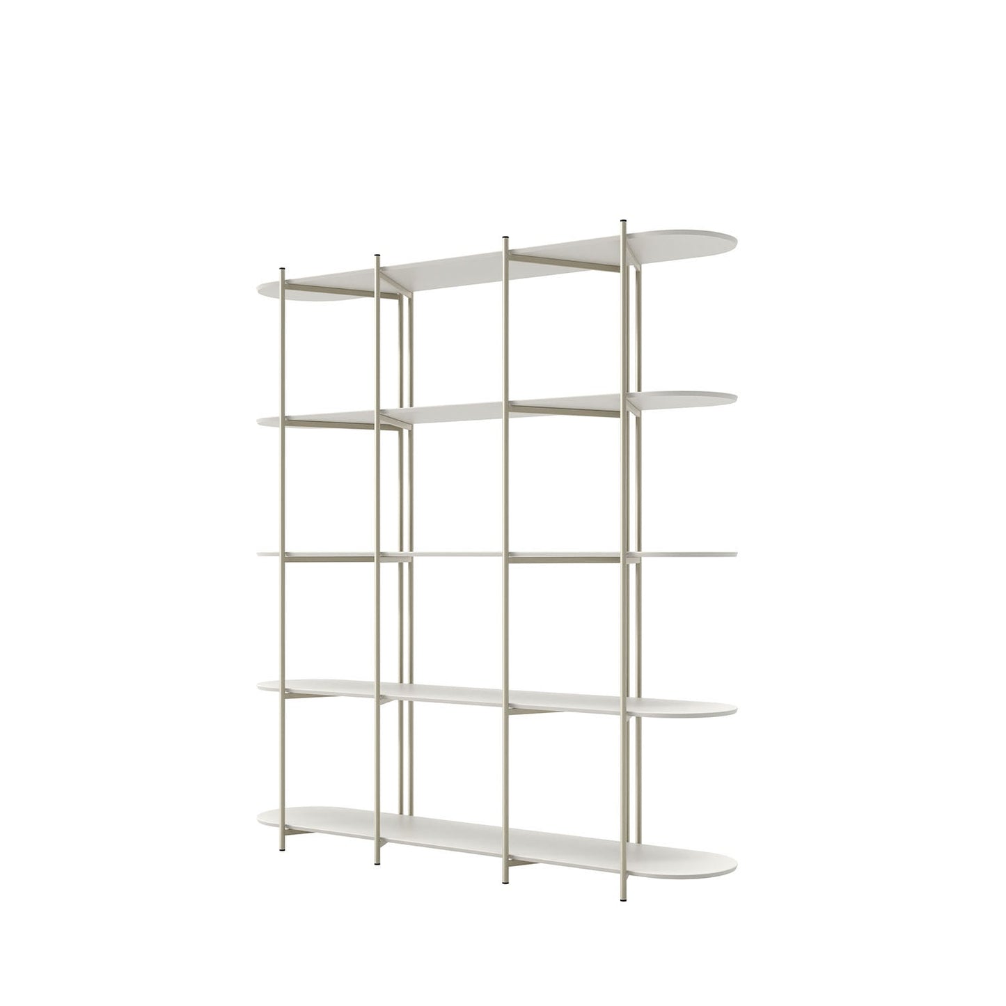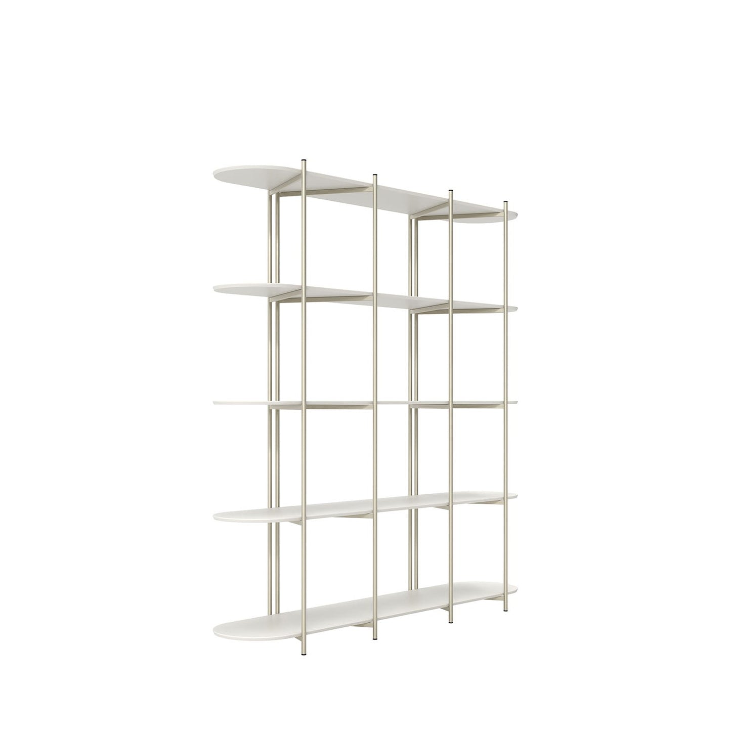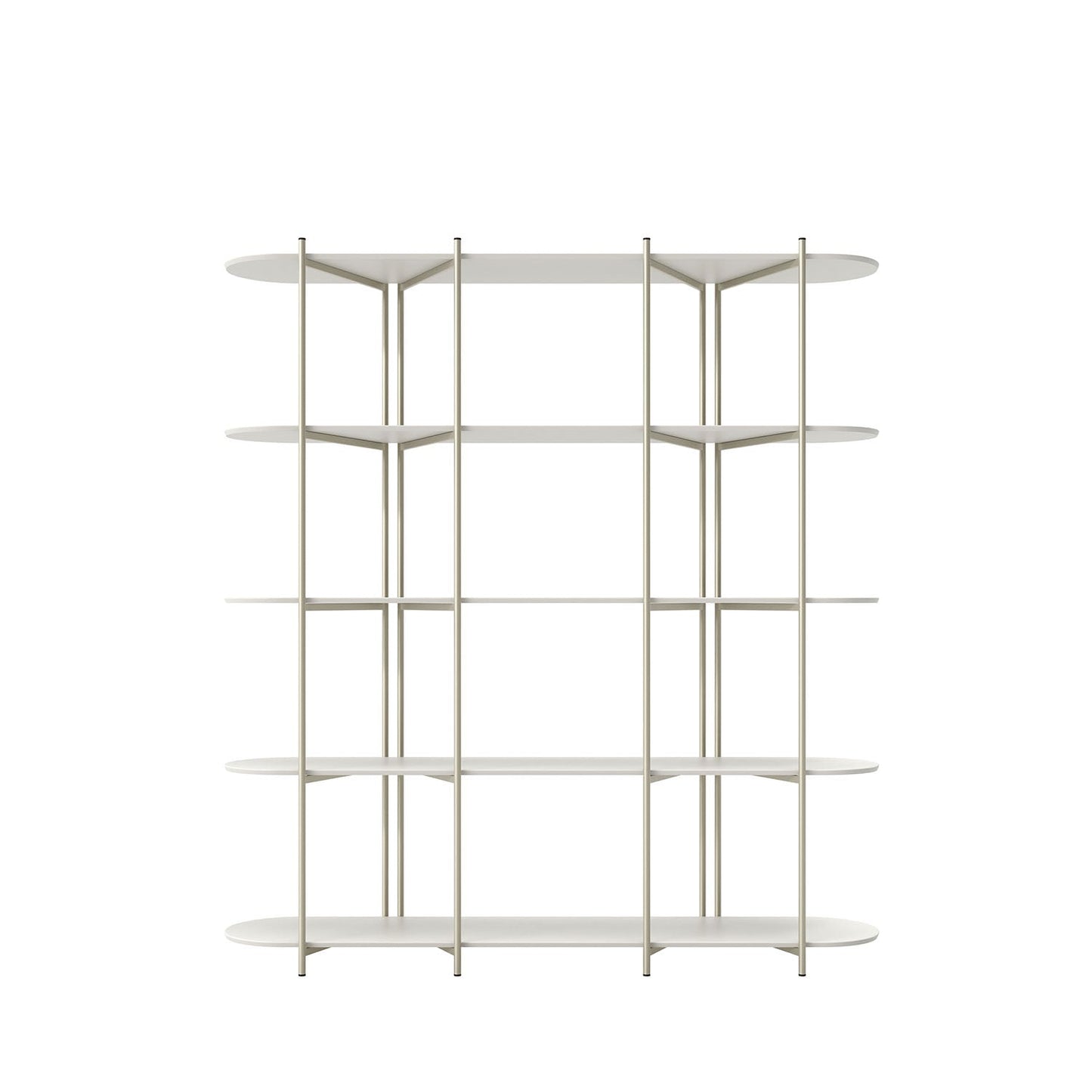 Estante de Livros 5 Prateleiras Aço com MDF Enya 180 cm - Off White Fosco c/ Champanhe