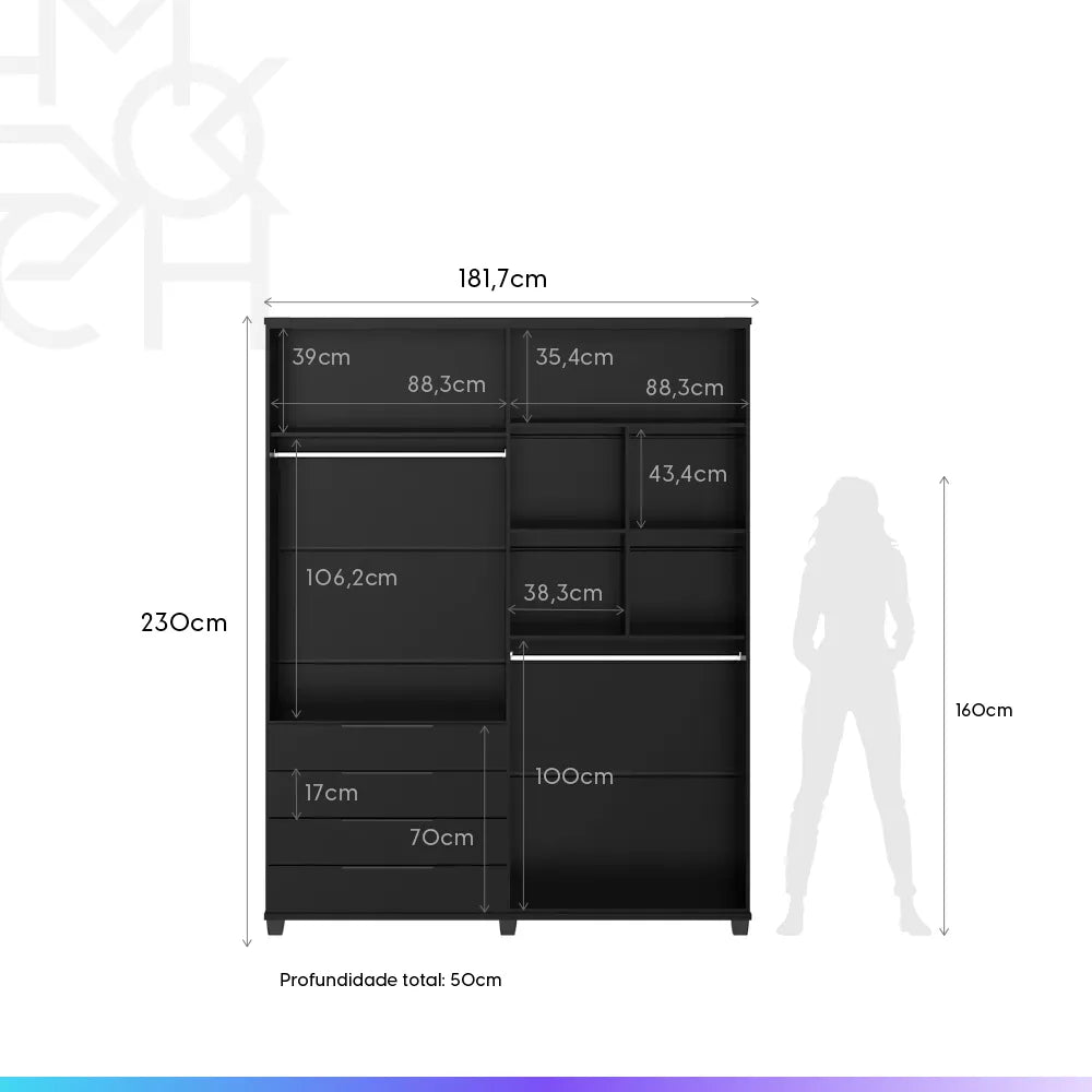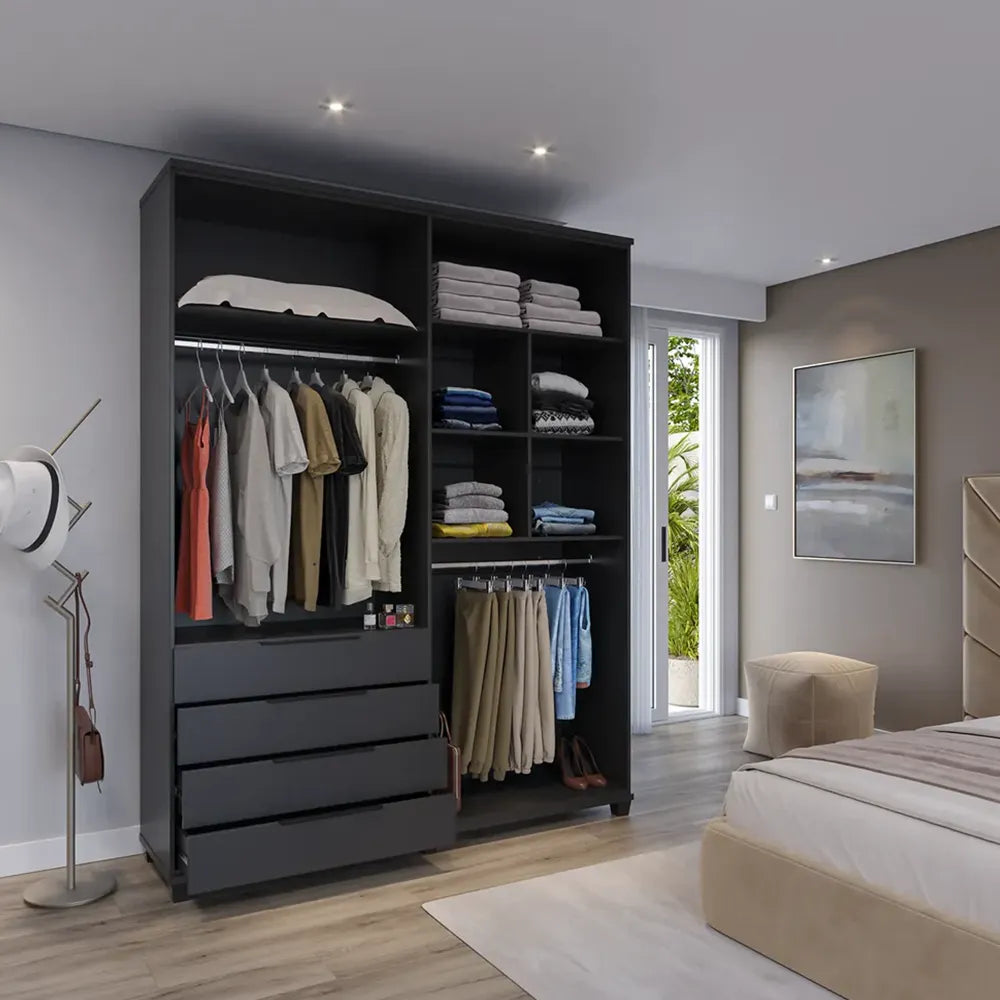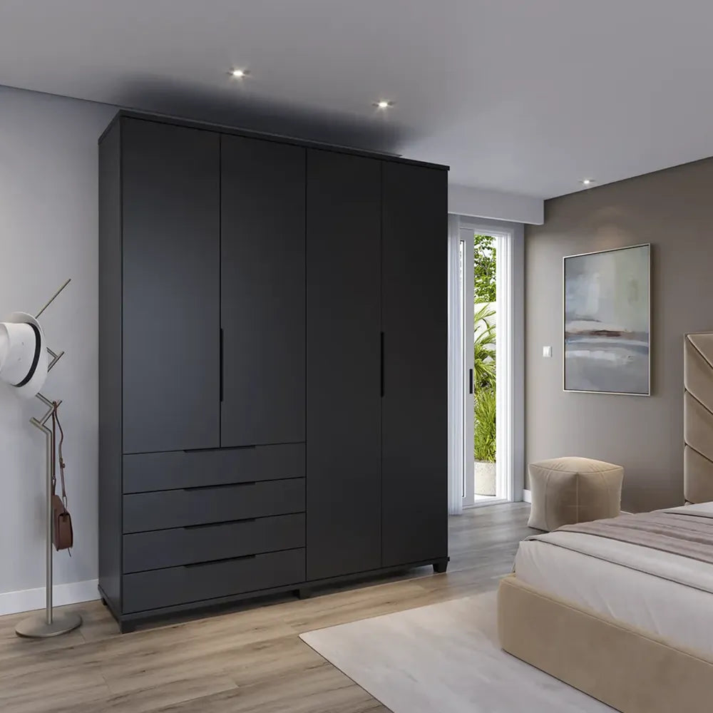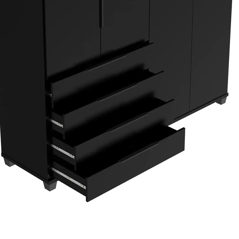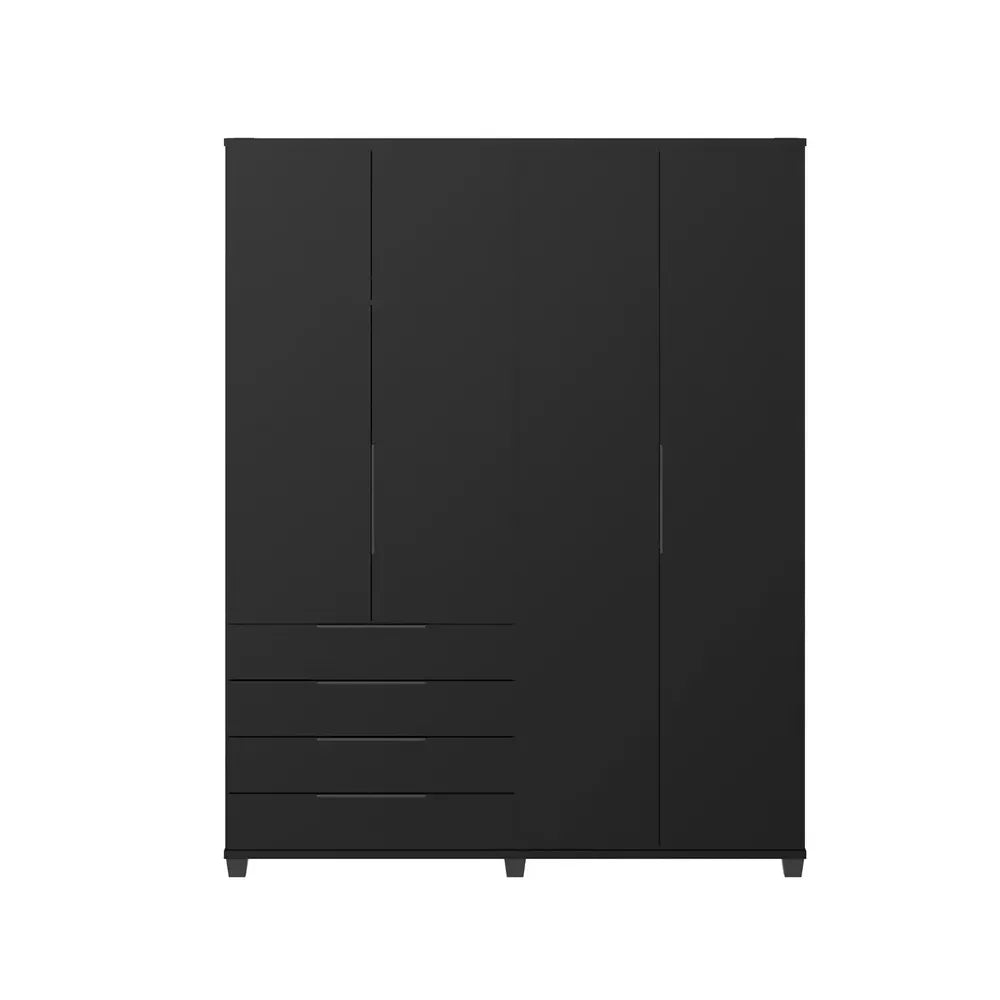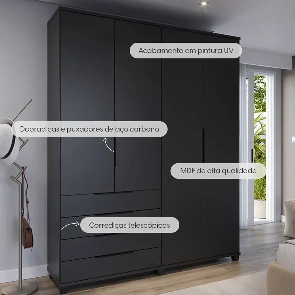 Guarda-Roupa Casal 4 Portas 4 Gavetas 100% MDF Allen 181 cm - Preto Fosco