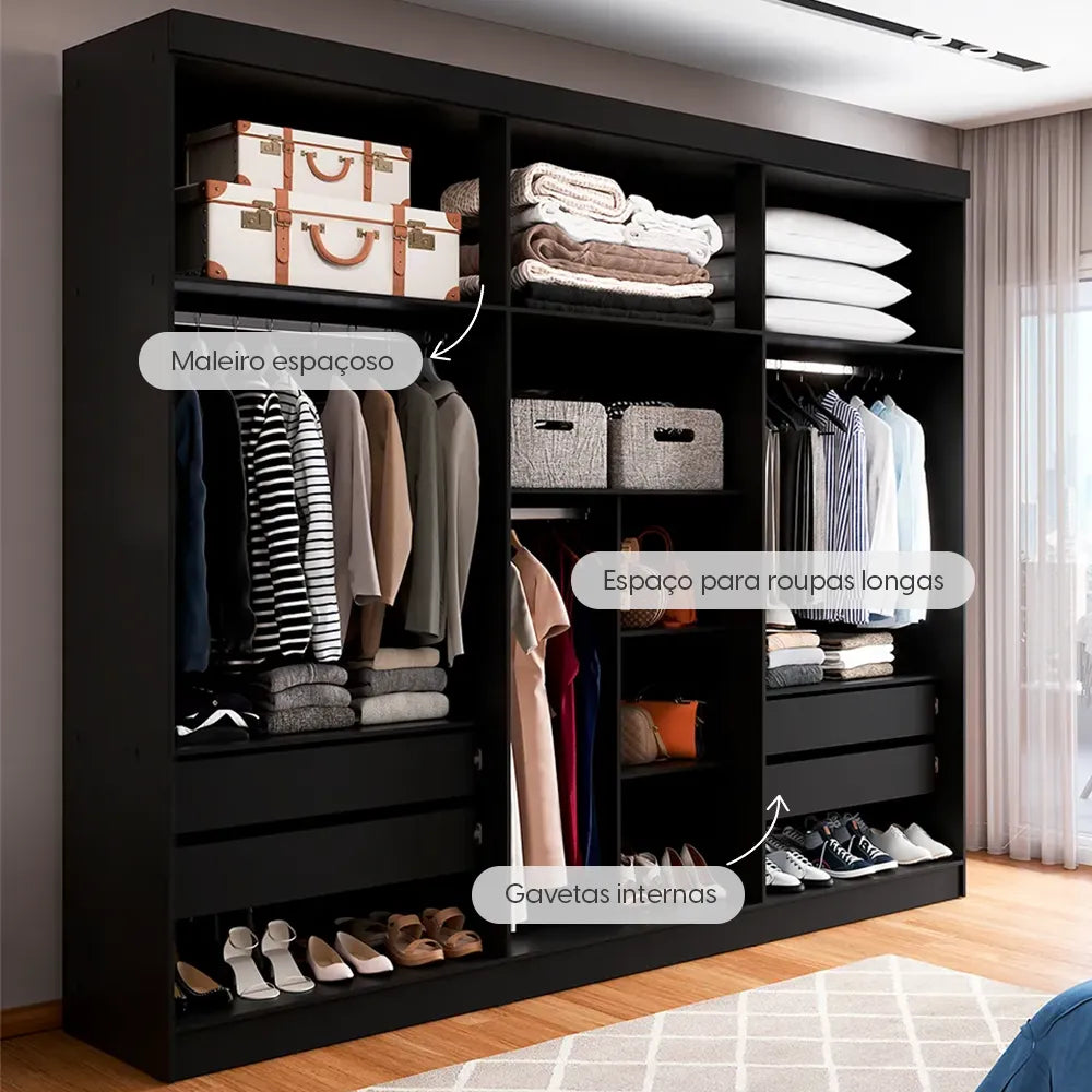 Guarda-Roupa Casal 6 Portas 4 Gavetas Theodore 231 cm - Preto
