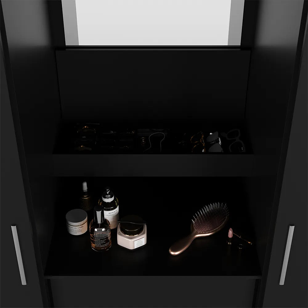 Guarda-Roupa Casal com Espelho 2 Portas de Correr 4 Gavetas Finley 184 cm - Preto