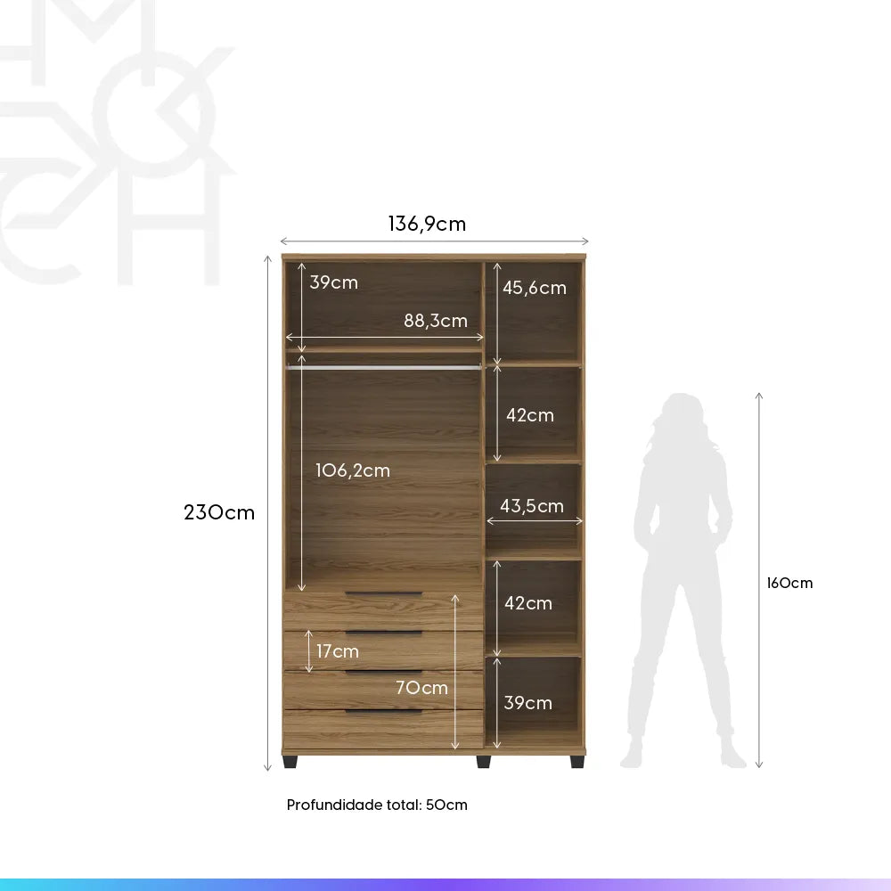 Com um design clássico e cores sóbrias, o guarda-roupa de solteiro Allen irá compor seu quarto com estilo, além de manter suas roupas, sapatos e acessórios muito bem organizados e protegidos.