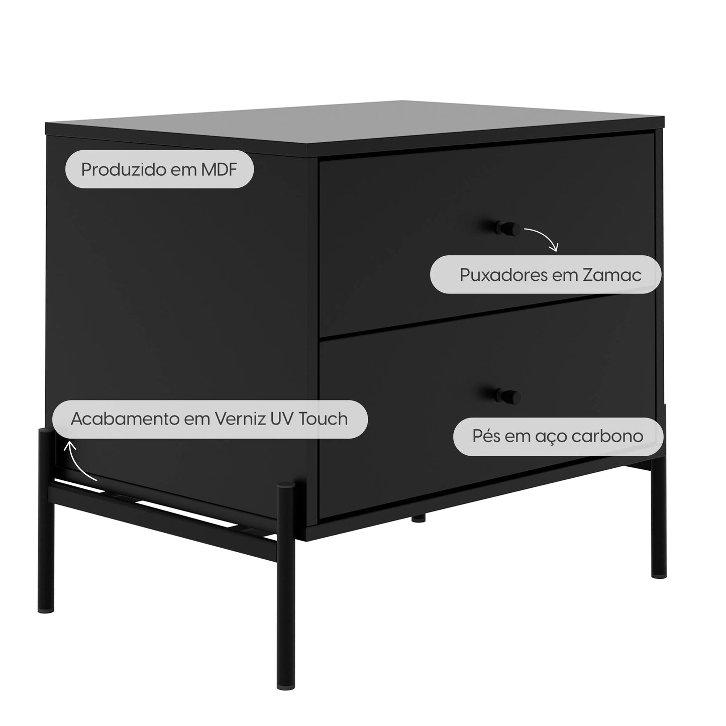 Mesa de Cabeceira 2 Gavetas Jasper 64 cm - Preto Fosco