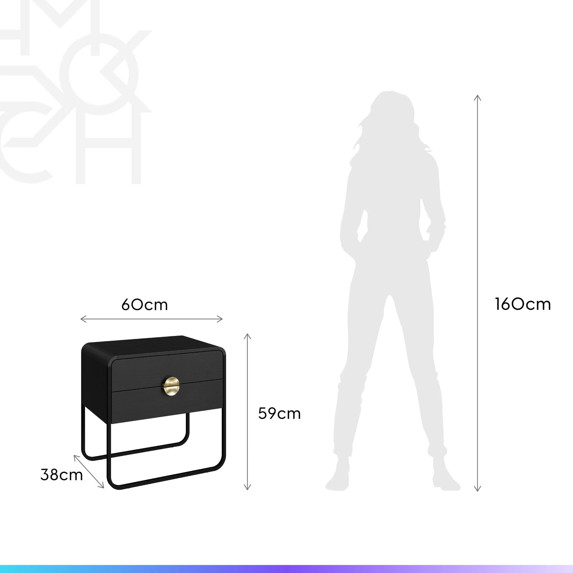 Mesa de Cabeceira com 2 Gavetas Dunna 60 cm - Preto c/ Dourado