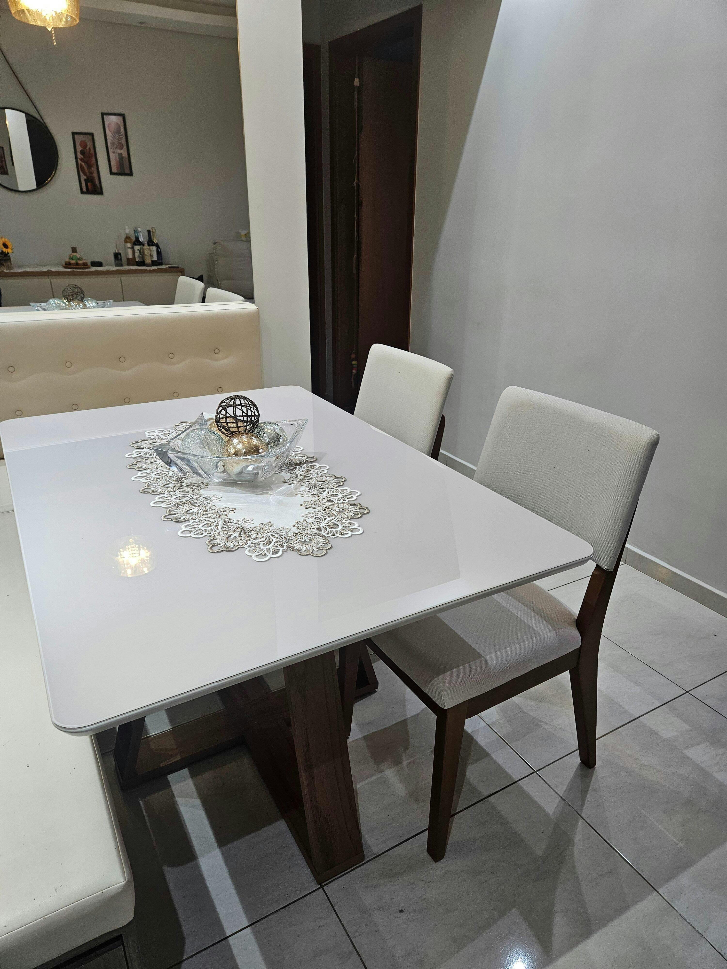 Experimente a harmonia entre design contemporâneo e praticidade com a mesa de jantar Avena! Com capacidade para até 4 pessoas, o modelo oferece um ambiente intimista para suas refeições. Seus pés centrais apresentam um design cruzado, proporcionando uma estabilidade excepcional além de agregar personalidade ao ambiente. Uma combinação perfeita de elegância e funcionalidade para sua sala de jantar ou área gourmet. Construída com MDF de alta qualidade, a peça garante durabilidade e resistência. O tampo usinado, delicadamente trabalhado, apresenta um acabamento refinado, complementado por uma camada de vidro aplicado, adicionando sofisticação ao seu espaço.