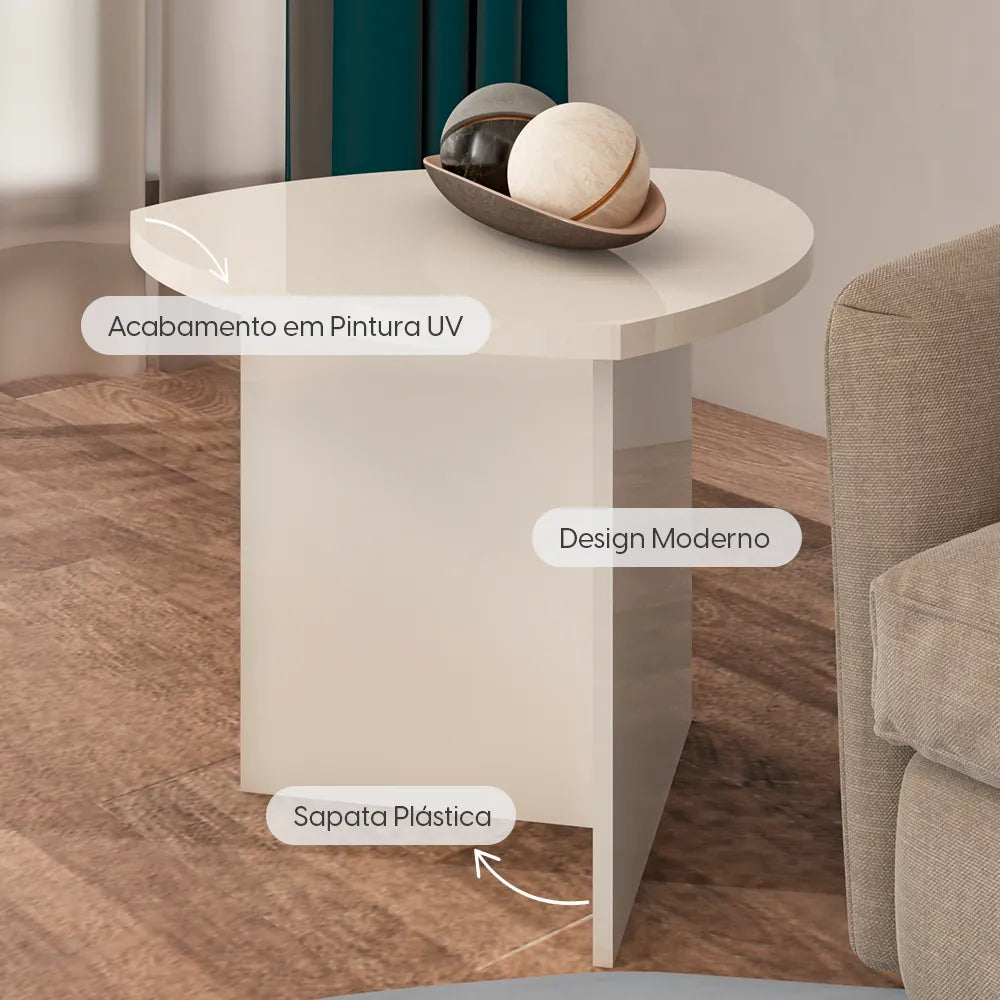 Mesa Lateral Triangular para Sala Elia 50 cm - Off White