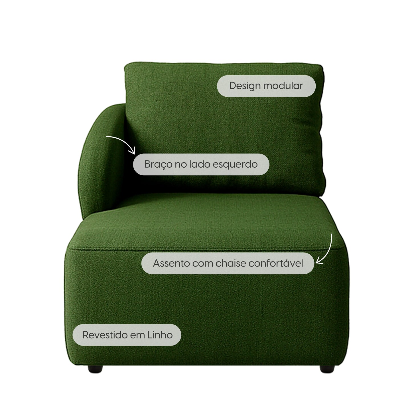 Módulo Sofá com Chaise e Braço Esquerdo 1 Lugar Mood 97 cm - Linho Trama Verde