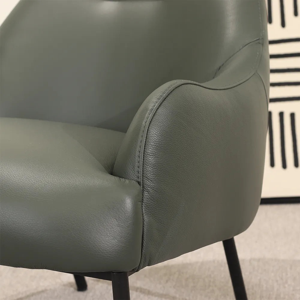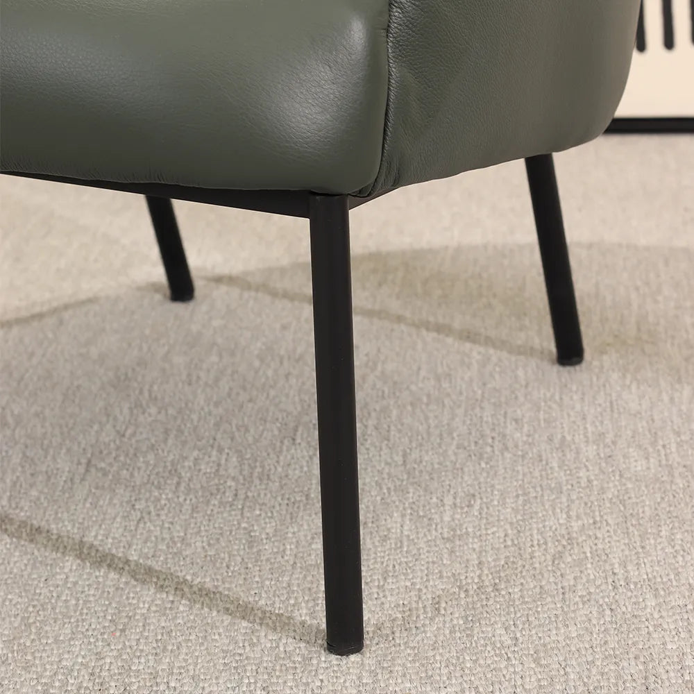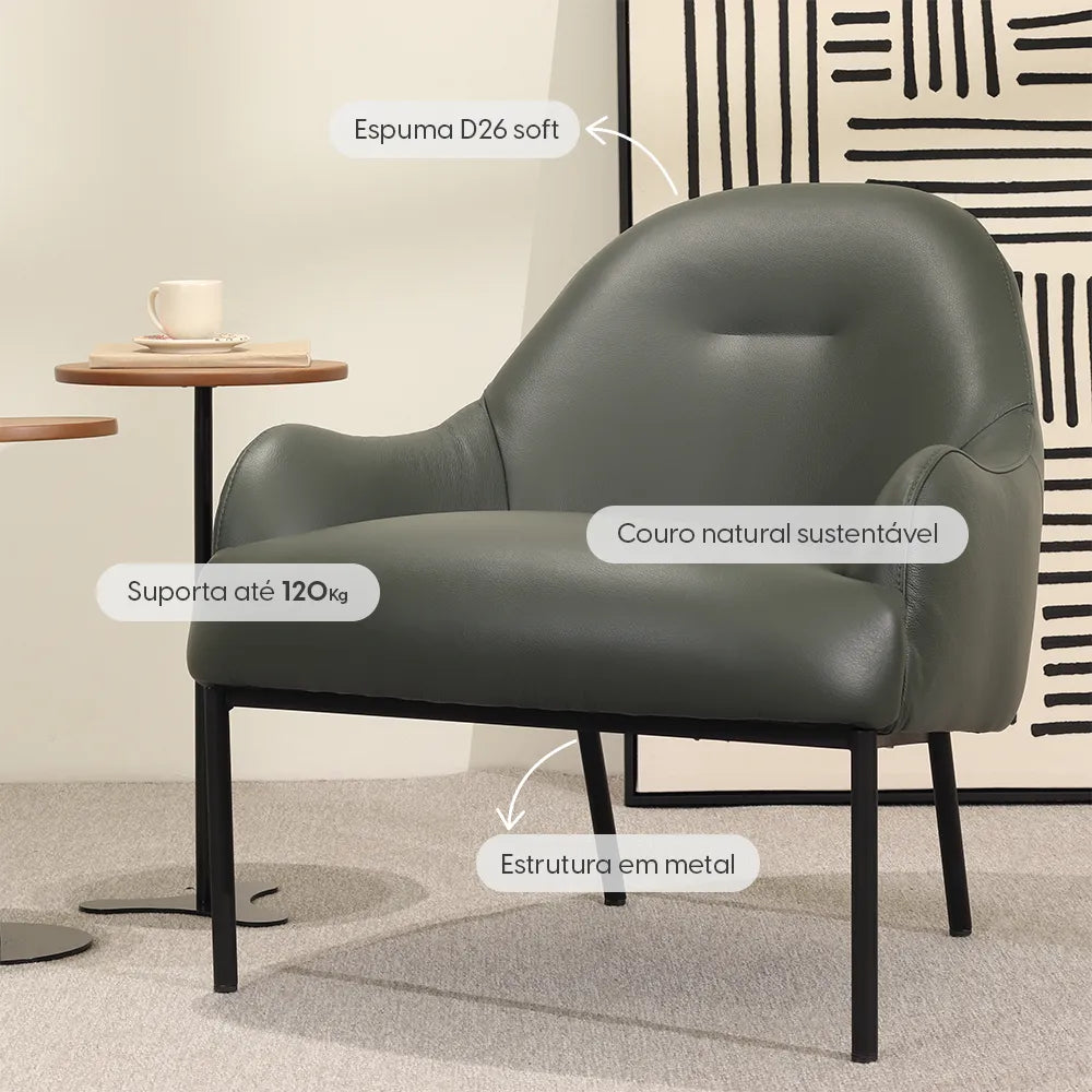 Poltrona Estofada Etienne - Couro Natural Verde c/ Preto