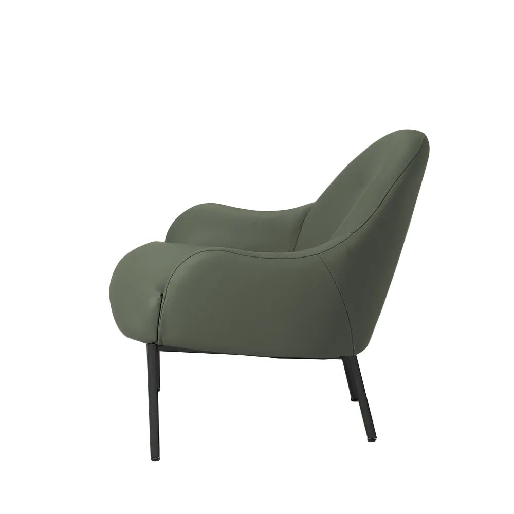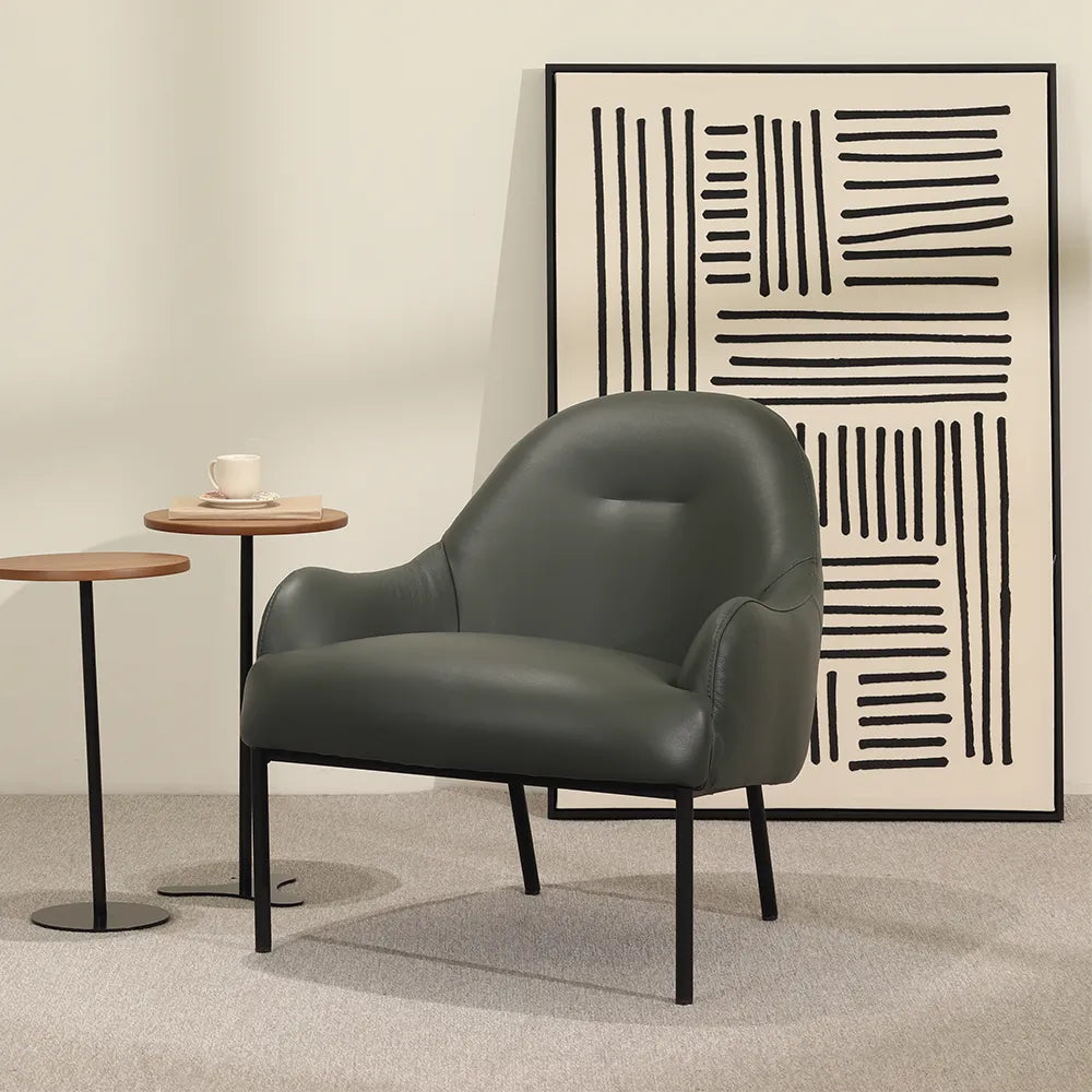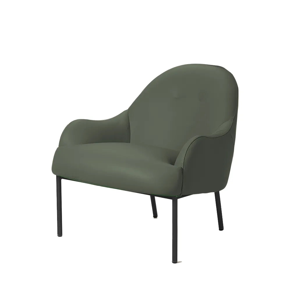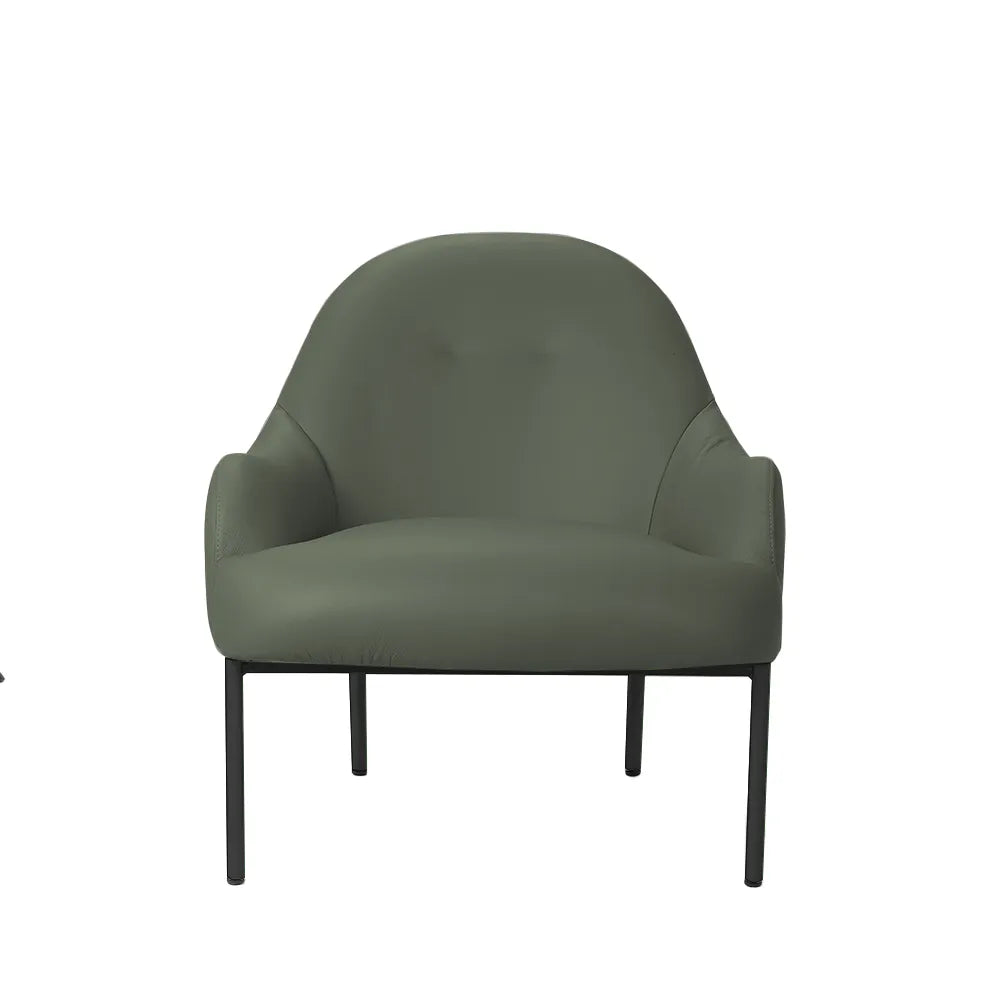 Poltrona Estofada Etienne - Couro Natural Verde c/ Preto