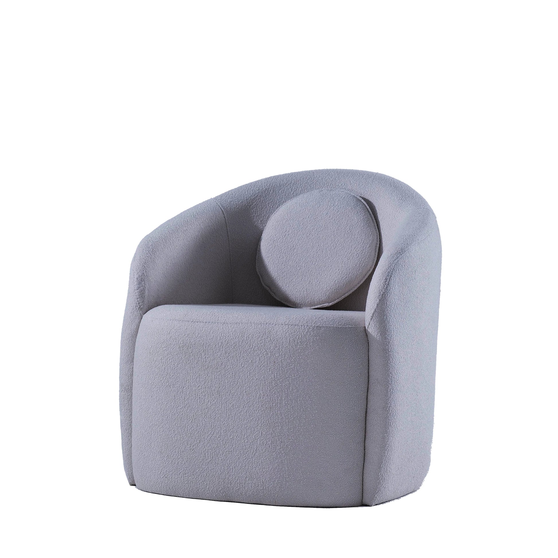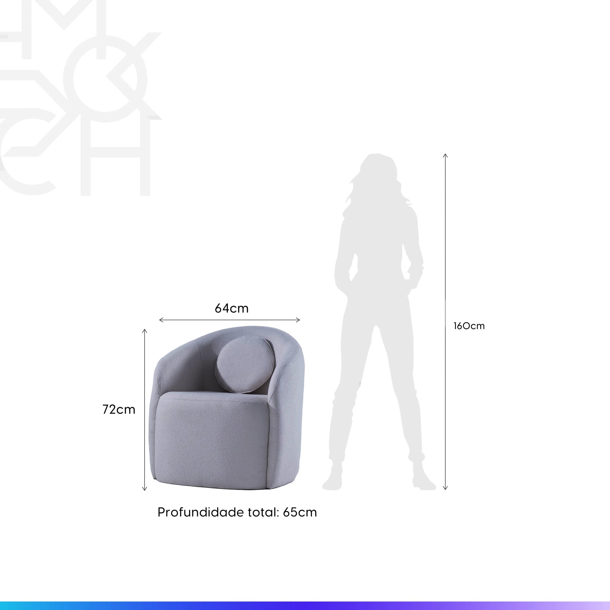 Poltrona Giratória Estofada com Almofada Nuvia - Linho Texturizado Cinza