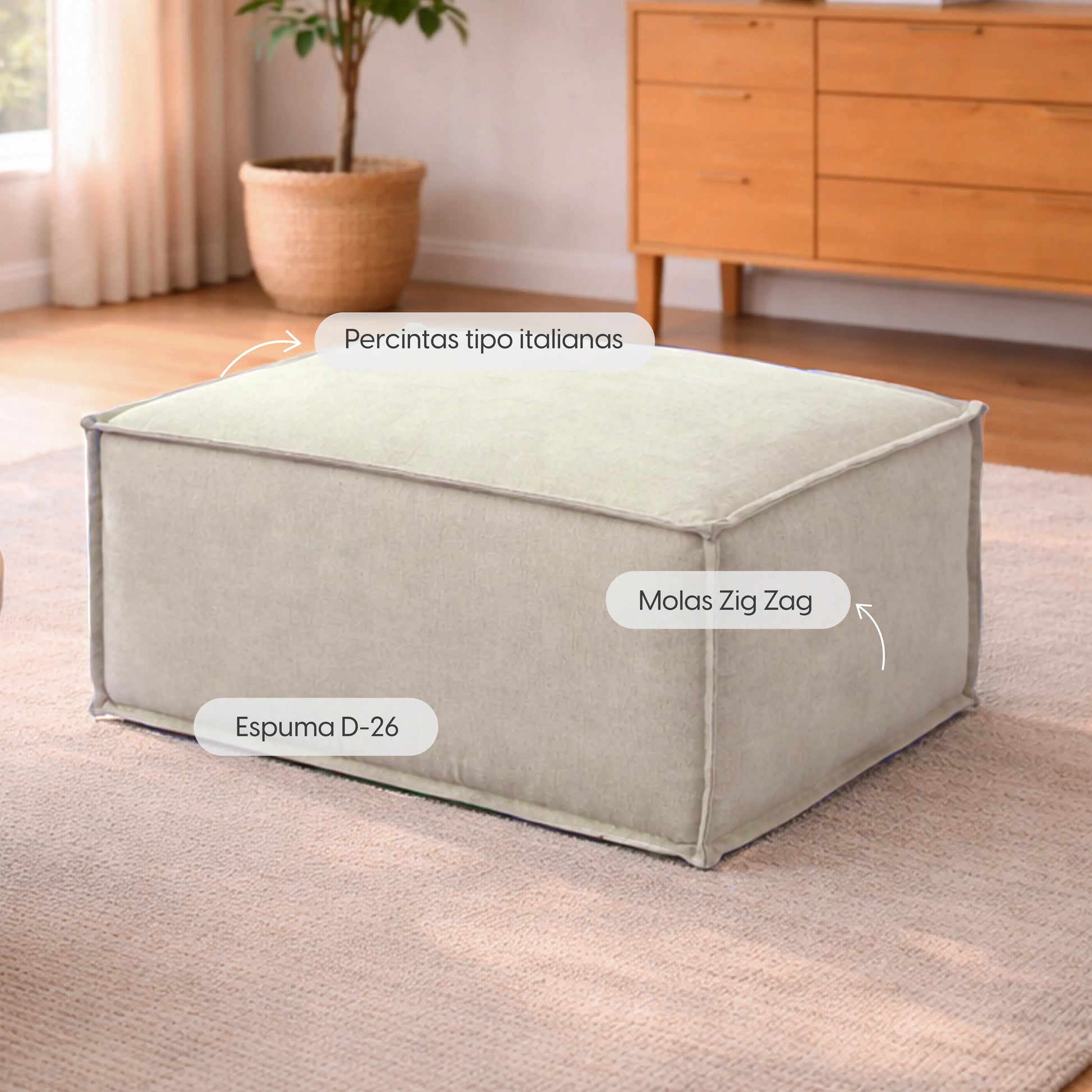 Puff Modular Estofado Freddo 80 cm - Linho Texturizado Bege