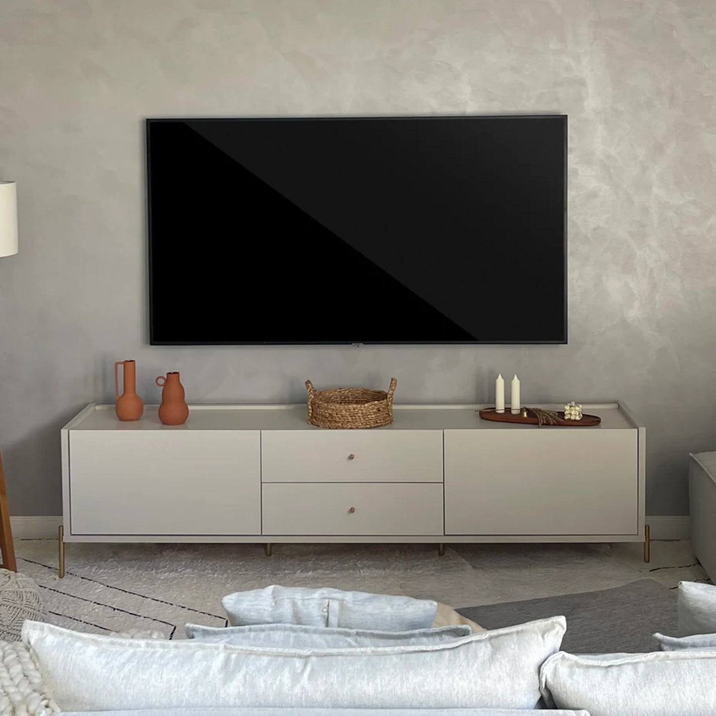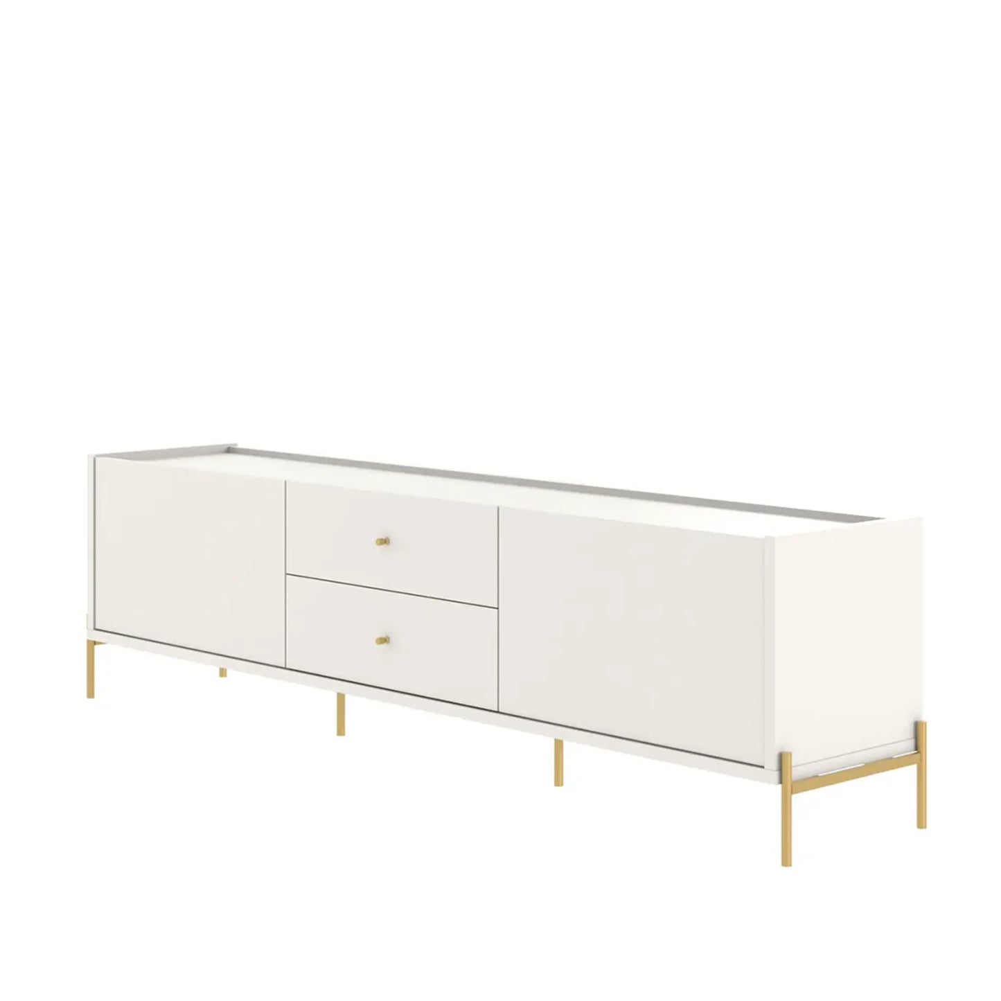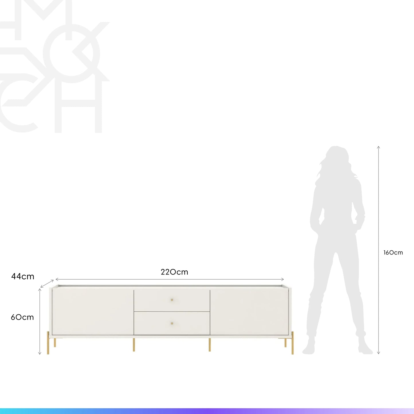 Rack para TV Até 75" 2 Gavetas 2 Portas Jasper 220 cm - Off White Fosco c/ Dourado