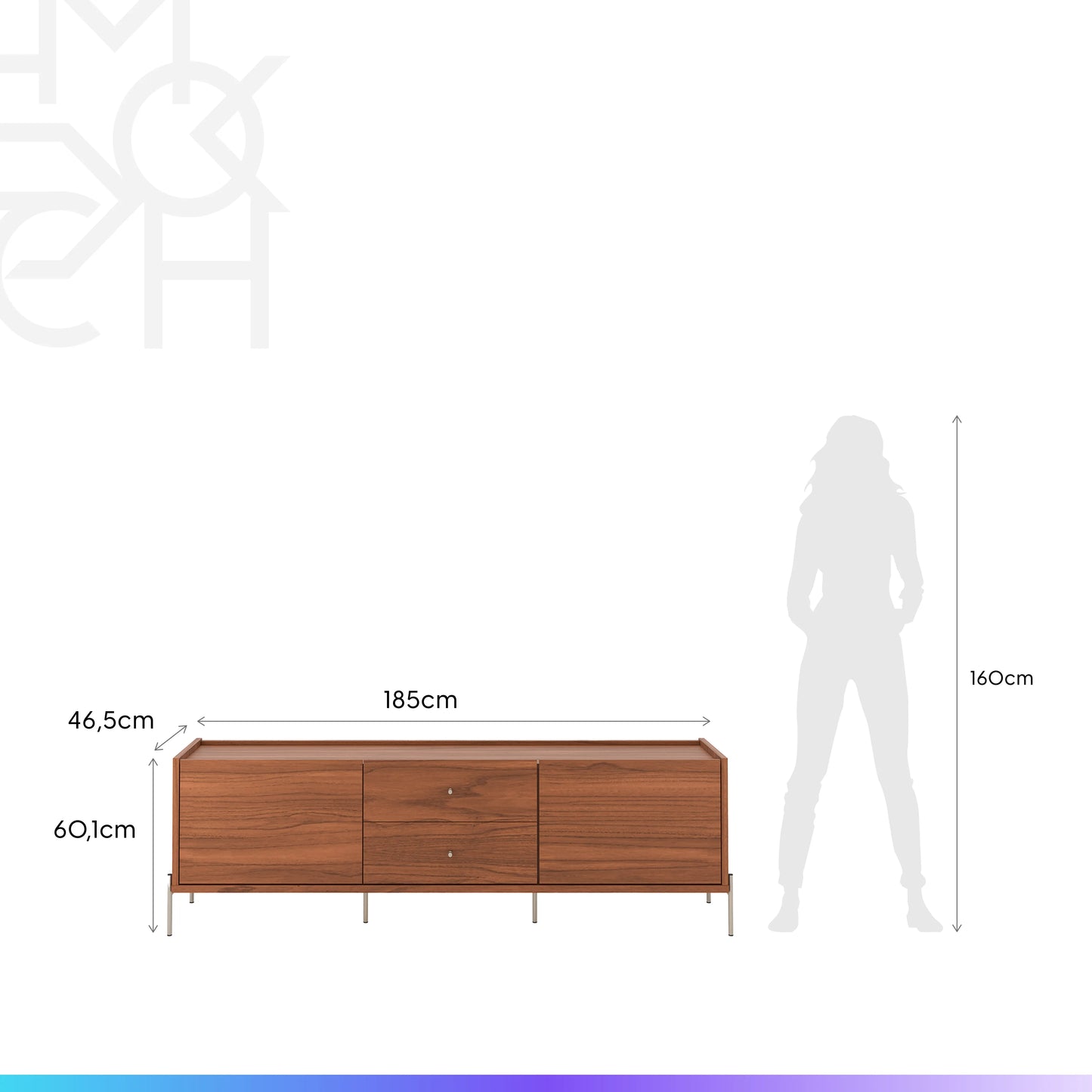 Rack para TV Até 75" 2 Gavetas 2 Portas Jasper 185 cm - Canella c/ Champanhe