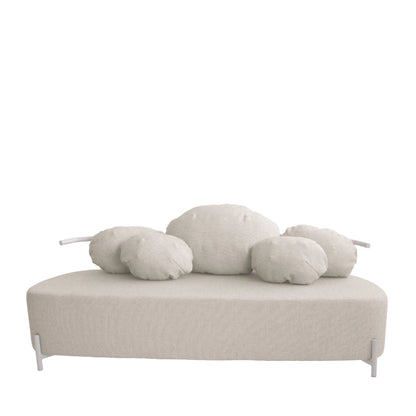 Encosto com cinco almofadas ovais soltas em espuma D-33, revestidas em tecido.