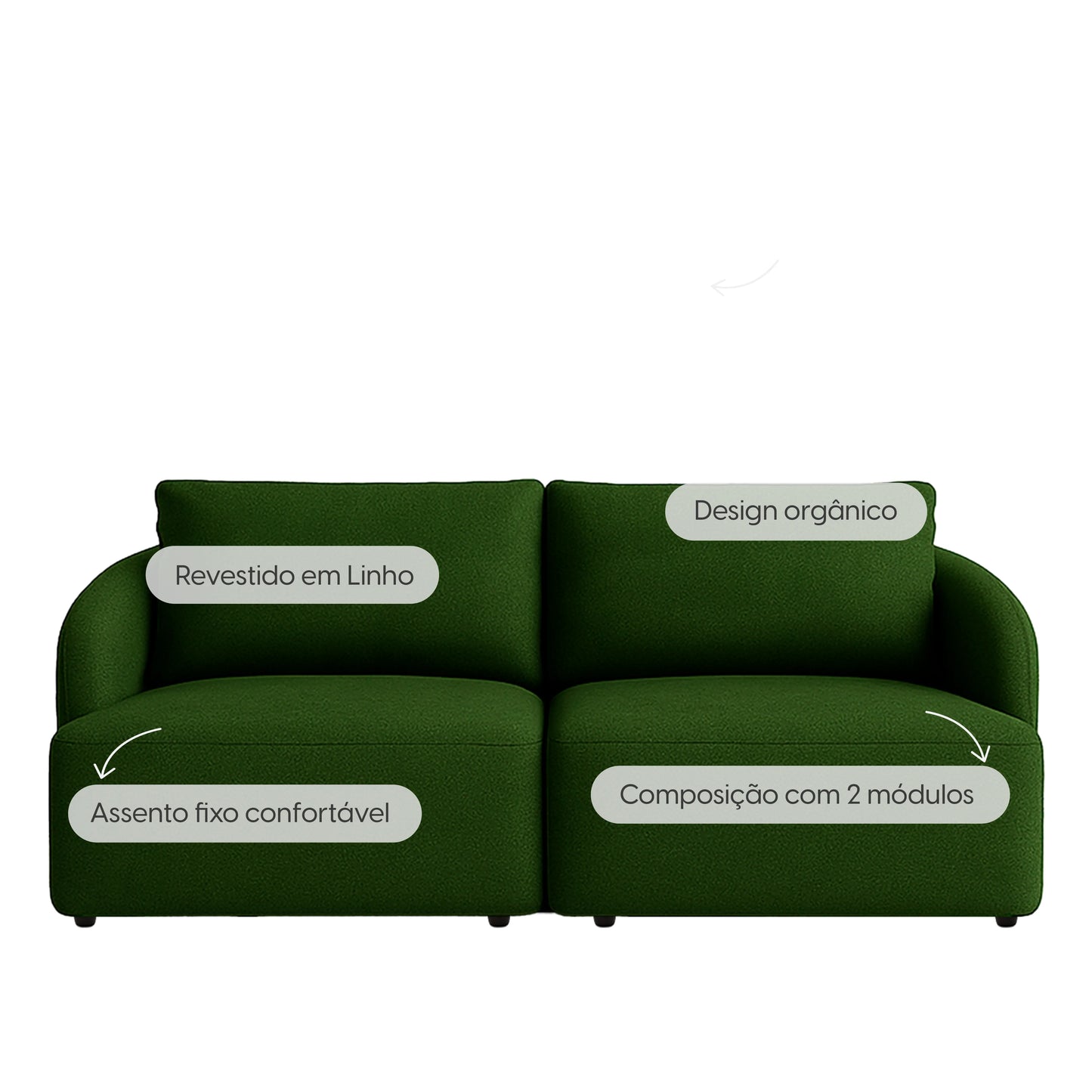 Sofá Modular 3 Lugares Mood 194 cm - Linho Trama Verde