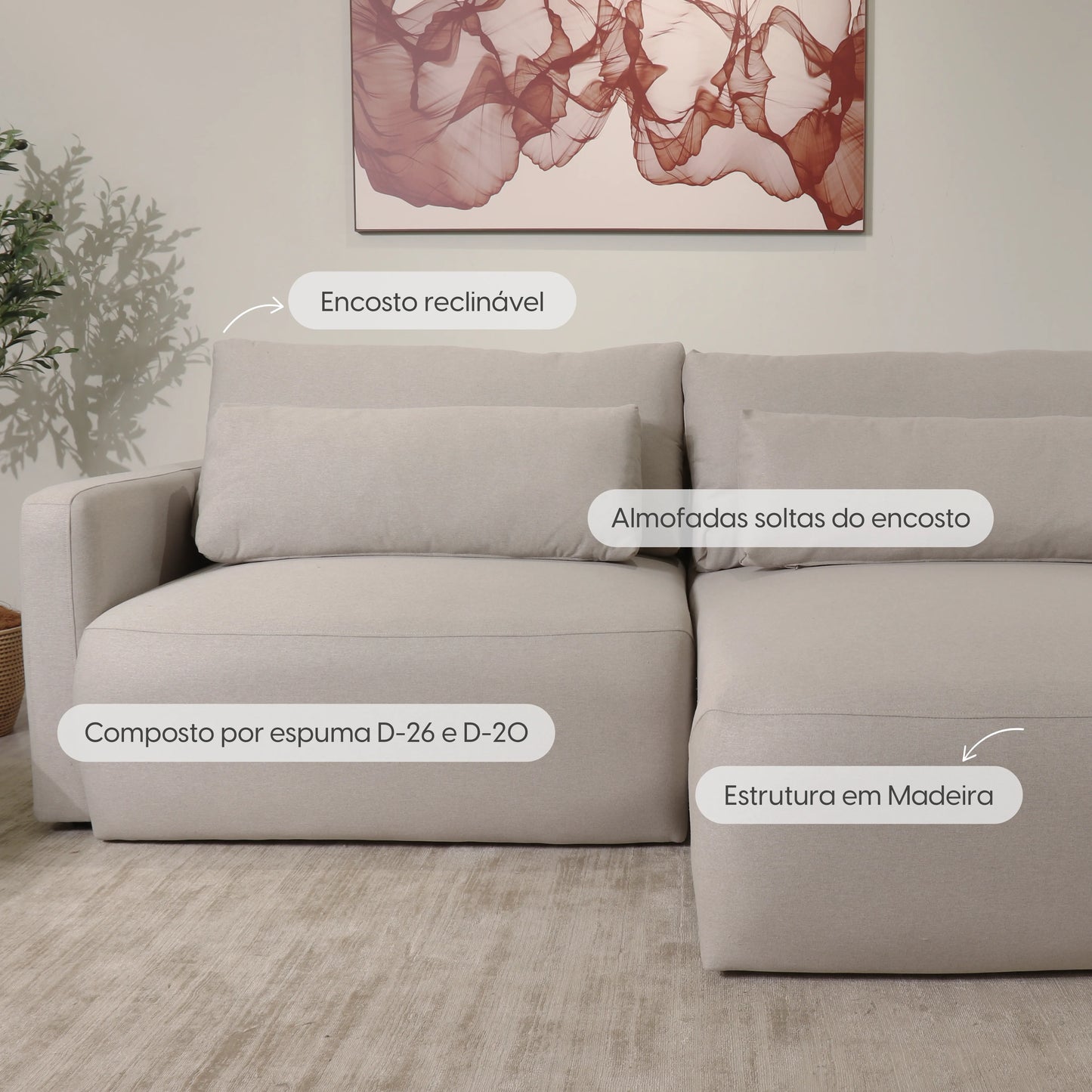 Sofá Retrátil e Reclinável 4 Lugares Raver 240 cm - Linho Bege