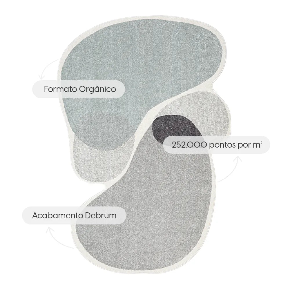 Com formato orgânico e cores neutras, o Tapete Egípcio Solin traz leveza e movimento à decoração, valorizando ambientes como sala, quarto ou home office.